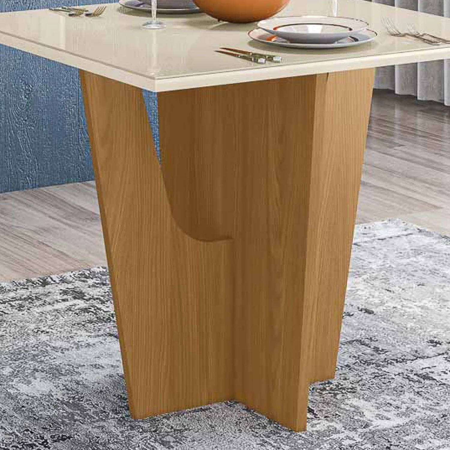 Características do Produto Material da Estrutura: MDP 15 mm/25 mm. Material do Tampo: MDF 25 mm/Vidro 4mm. Peso suportado: 40 Kg. Acabamento: Pintura UV. Escala de Brilho: Brilho. Quantidade de Lugares: 4 Lugares. Diferenciais: - Design moderno. - Material resistente. - Tampo chanfrado. Sistema de Montagem: Parafusos/Cavilha/Cola. Manual de Montagem: Sim. Complexidade da Montagem: Médio. Conteúdo da Embalagem: 1 Mesa. Volumes: 2 Volumes. Garantia do Fabricante: 90 dias contra defeito de fabricação. Montagem: Recomendamos que seja feita por um profissional. Recomendação de Limpeza: Utilize pano levemente úmido.