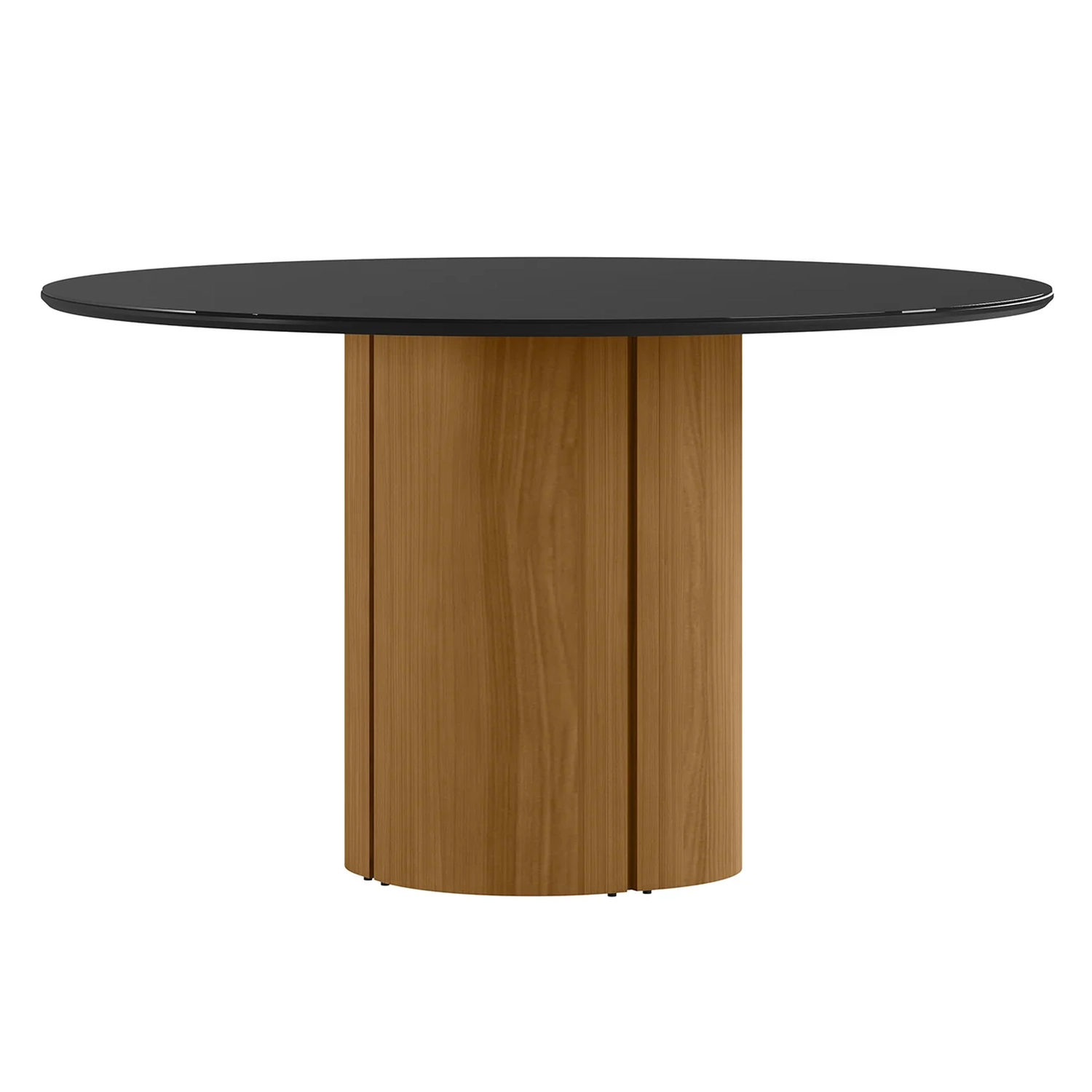 Sua base cilíndrica, com detalhes frisados e montagem flex, confere um visual contemporâneo e único. Acomoda confortavelmente até seis lugares, sendo perfeita para refeições em família ou encontros com amigos.