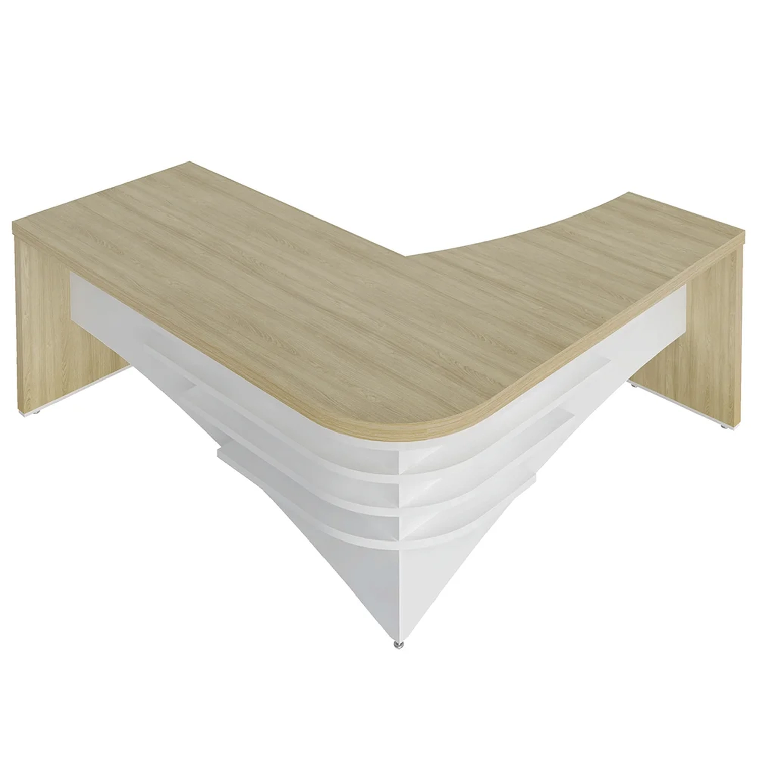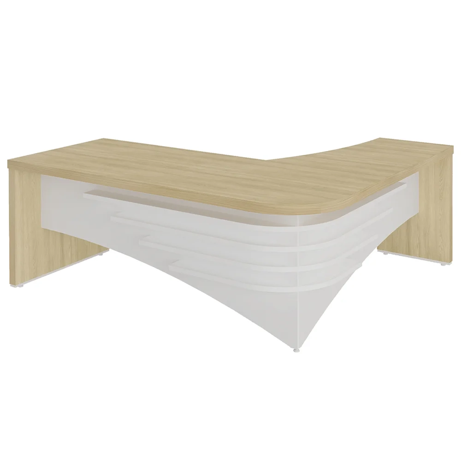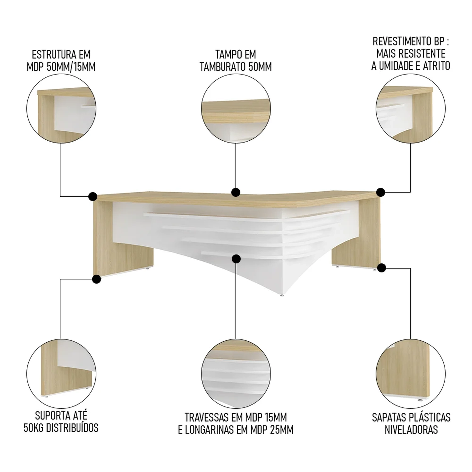 Procurando por uma mesa de escritório elegante e imponente? Conheça a Mesa Diretor em L Lado Esquerdo 200x180cm Corp A06 Carvalho/Branco, da Mpozenato.