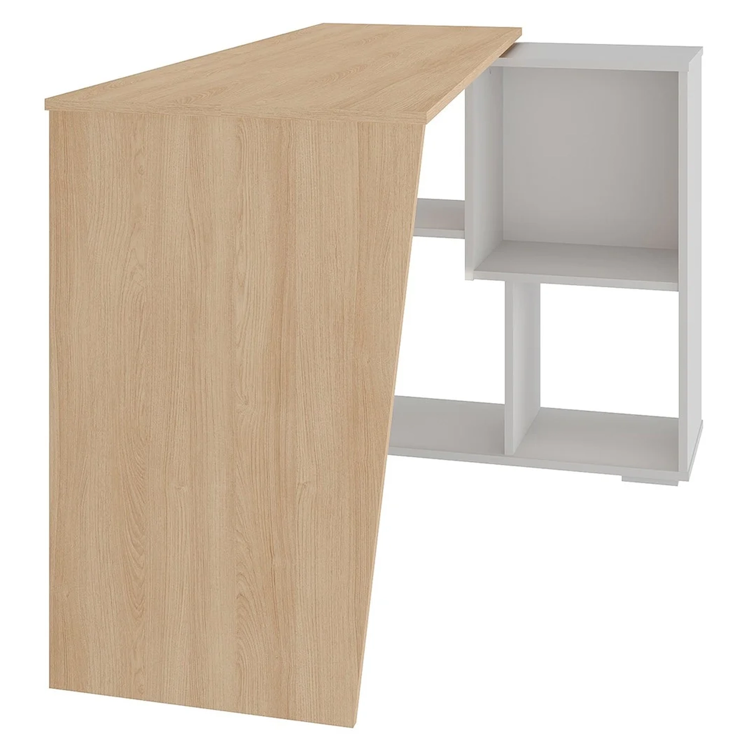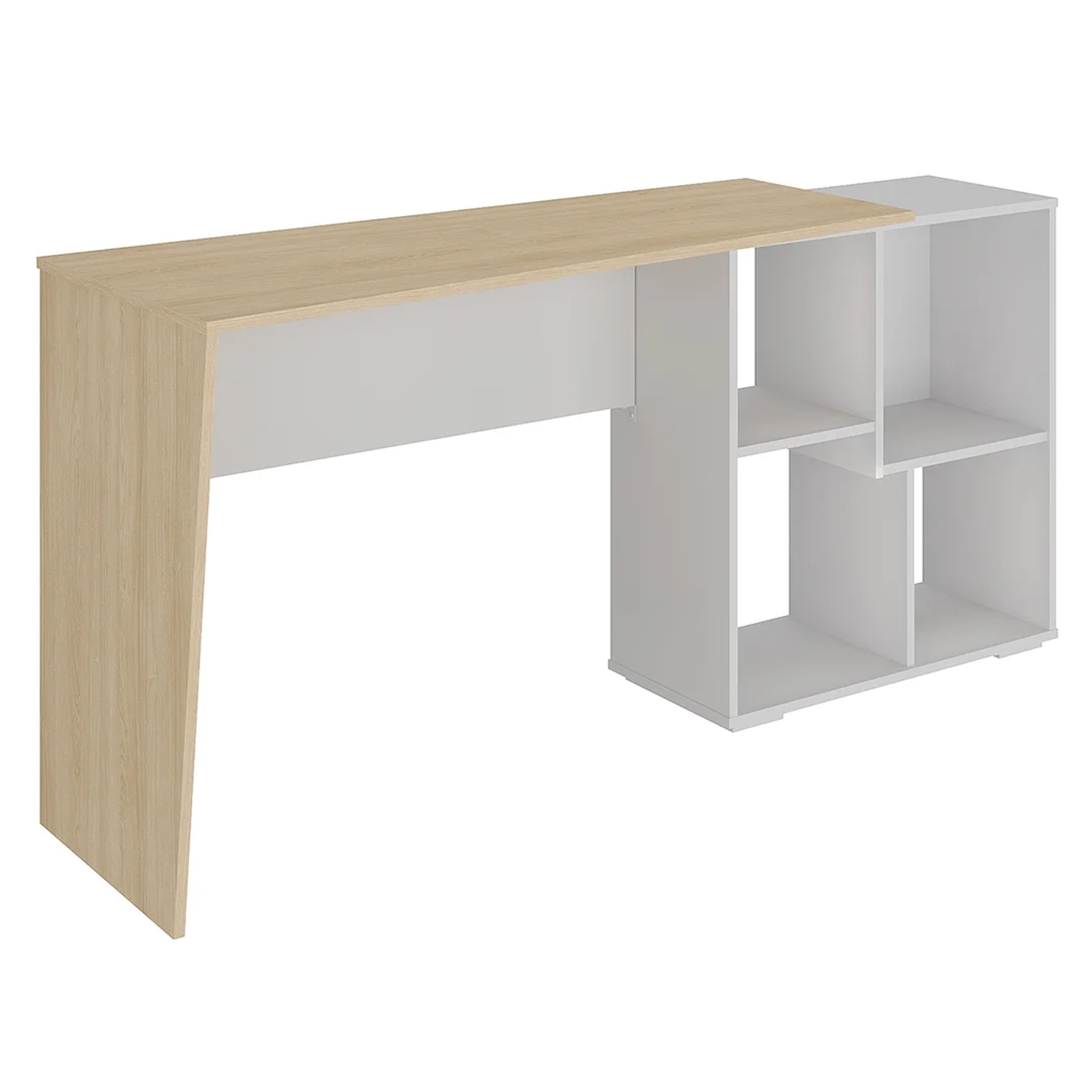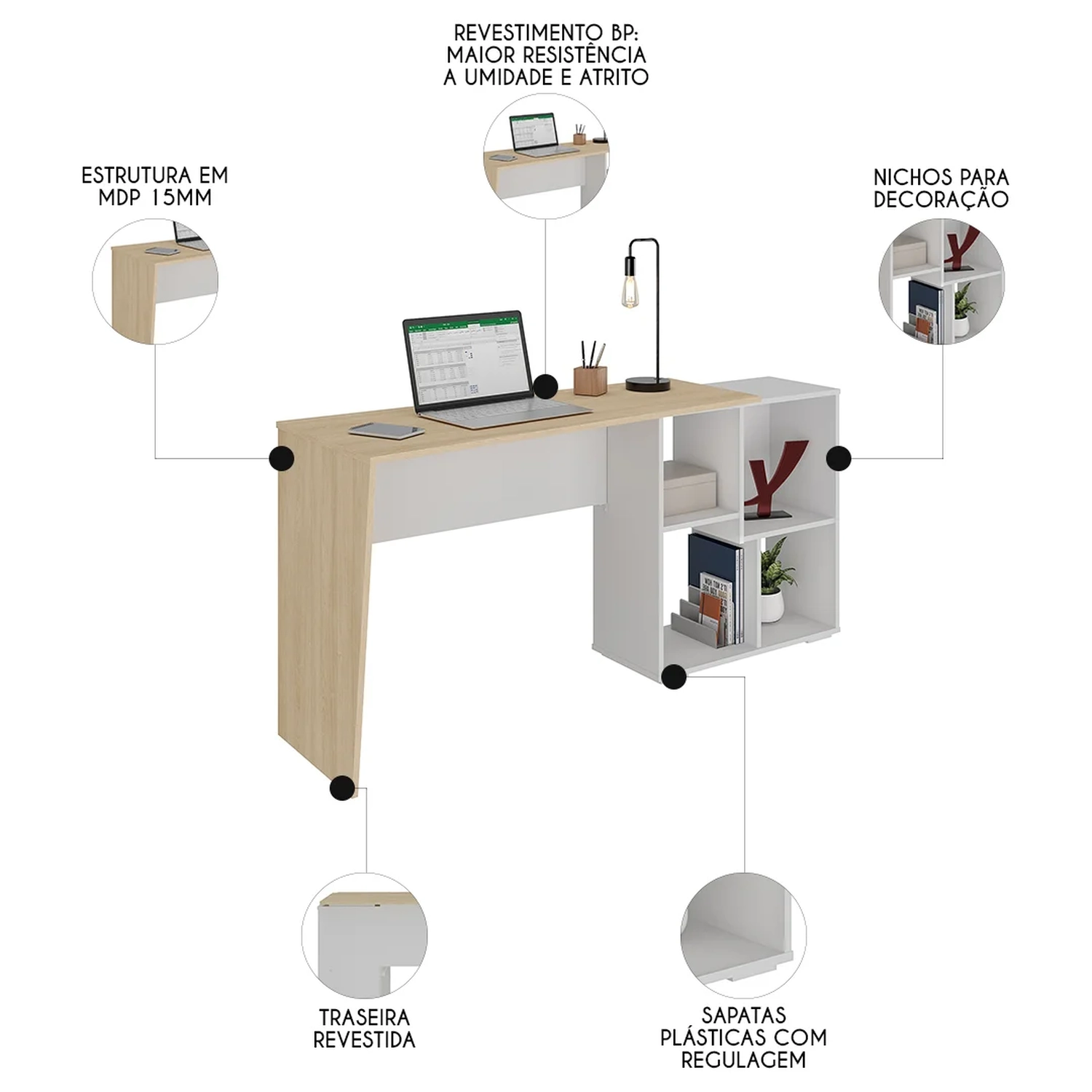 Essa mesa de estudos possui quatro nichos estrategicamente posicionados, prontos para acomodar livros, cadernos e pequenos objetos que tornam o dia a dia mais organizado. Além disso,a versatilidade é uma das grandes estrelas, já que conta com uma dupla opção de montagem, a mesa pode ser posicionada tanto de forma reta, ocupando uma parede e criando uma atmosfera minimalista e fluida, ou em formato de L, aproveitando melhor os cantos e oferecendo um espaço ainda mais amplo para a criatividade fluir. Essa flexibilidade se adapta perfeitamente às necessidades de cada usuário, seja ele um estudante em busca de concentração ou um profissional trabalhando em casa.