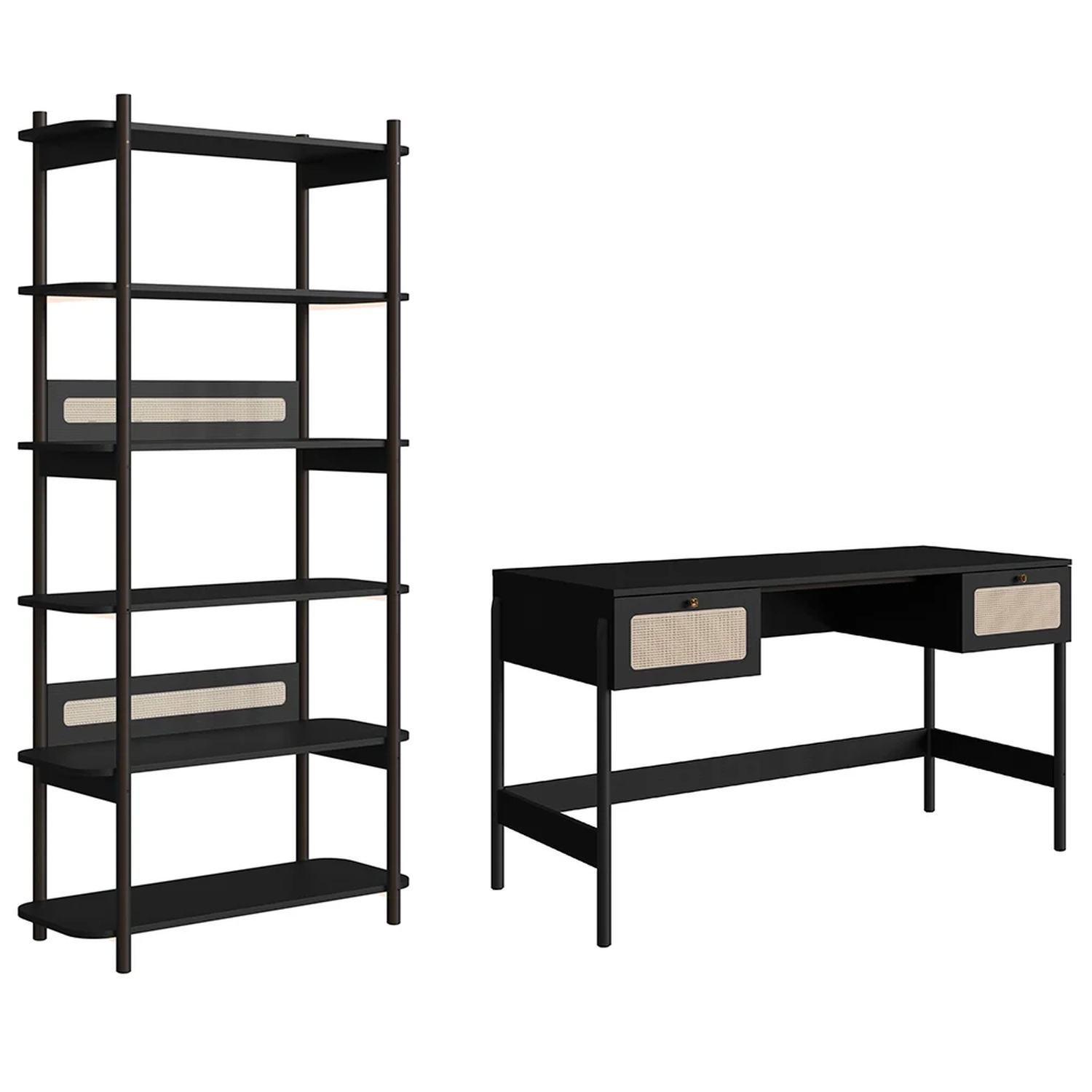 Conheça a Mesa Escrivaninha e Estante Pés Madeira Arlo A10 Nero/Preto, da Mpozenato, que transformará seu escritório ou home office em um ambiente elegante.