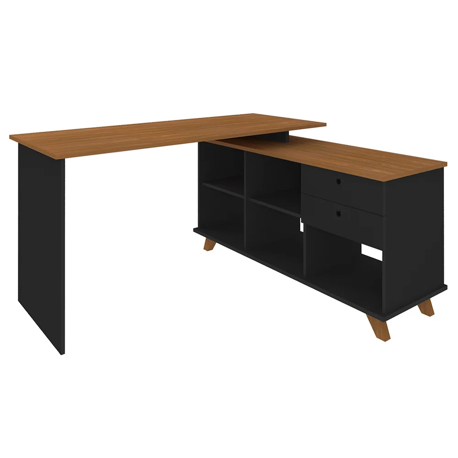 Com a Mesa Escrivaninha em L 2 Gavetas e Nichos Golden A06 Freijó/Preto, da Mpozenato, a sua rotina no escritório ou home office será muito mais produtiva e agradável.