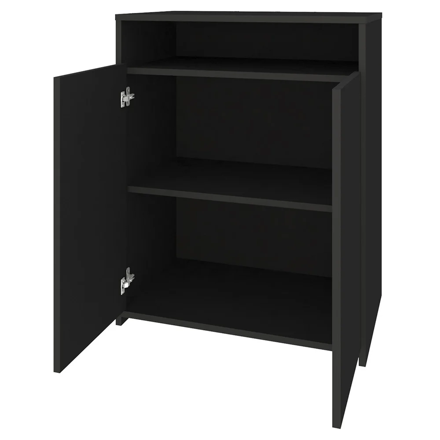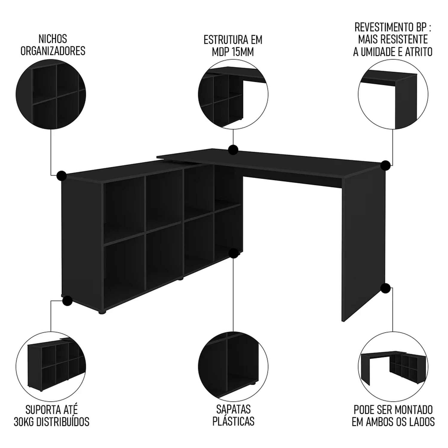 A Mesa Escrivaninha em L Eron e Balcão 60cm 2 Portas Look A06 Preto, da Mpozenato, é dupla que estava faltando para deixar o seu home office mais organizado e funcional.