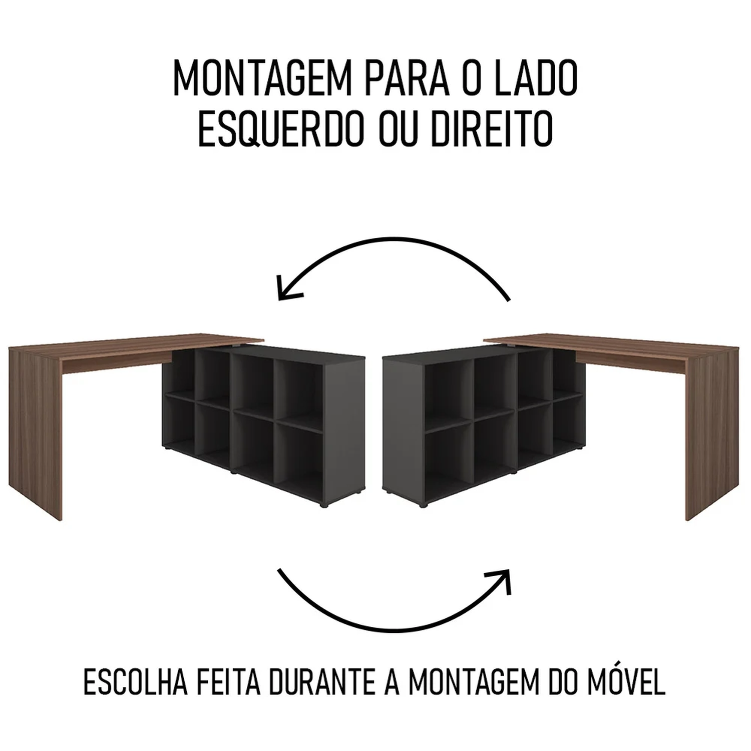 - Mesa com opção de montagem em ambos os lados.
