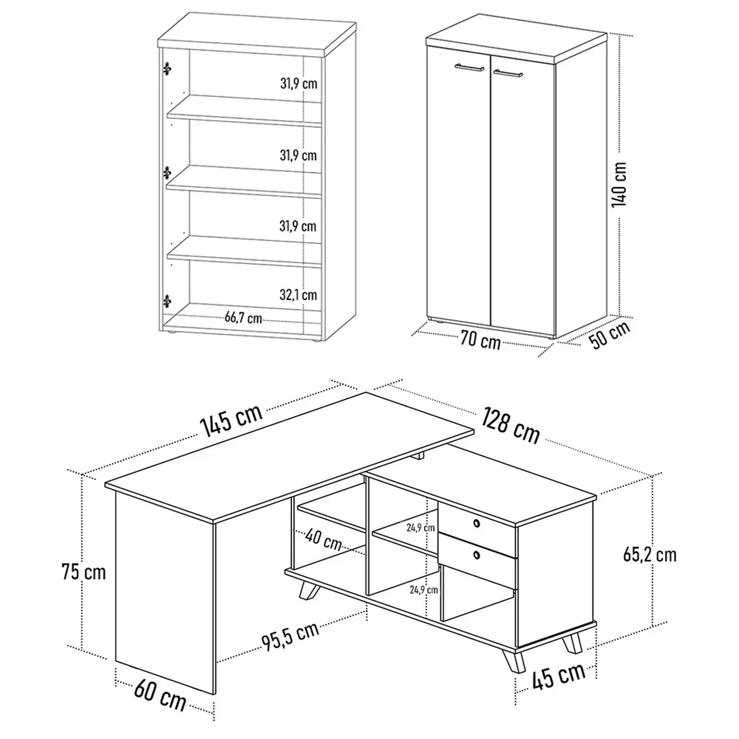 Conteúdo da Embalagem: 1 Mesa em L, 1 Armário Alto.