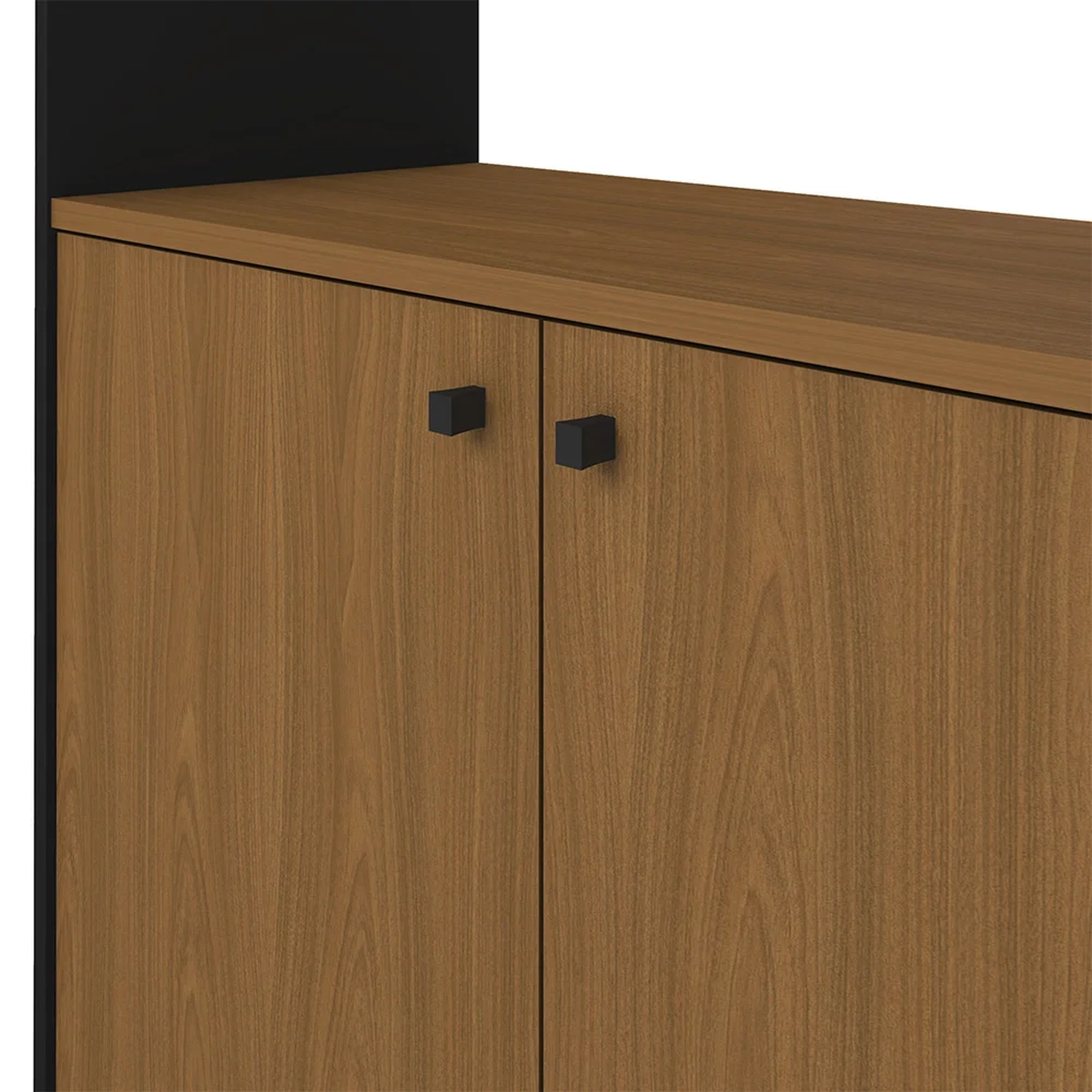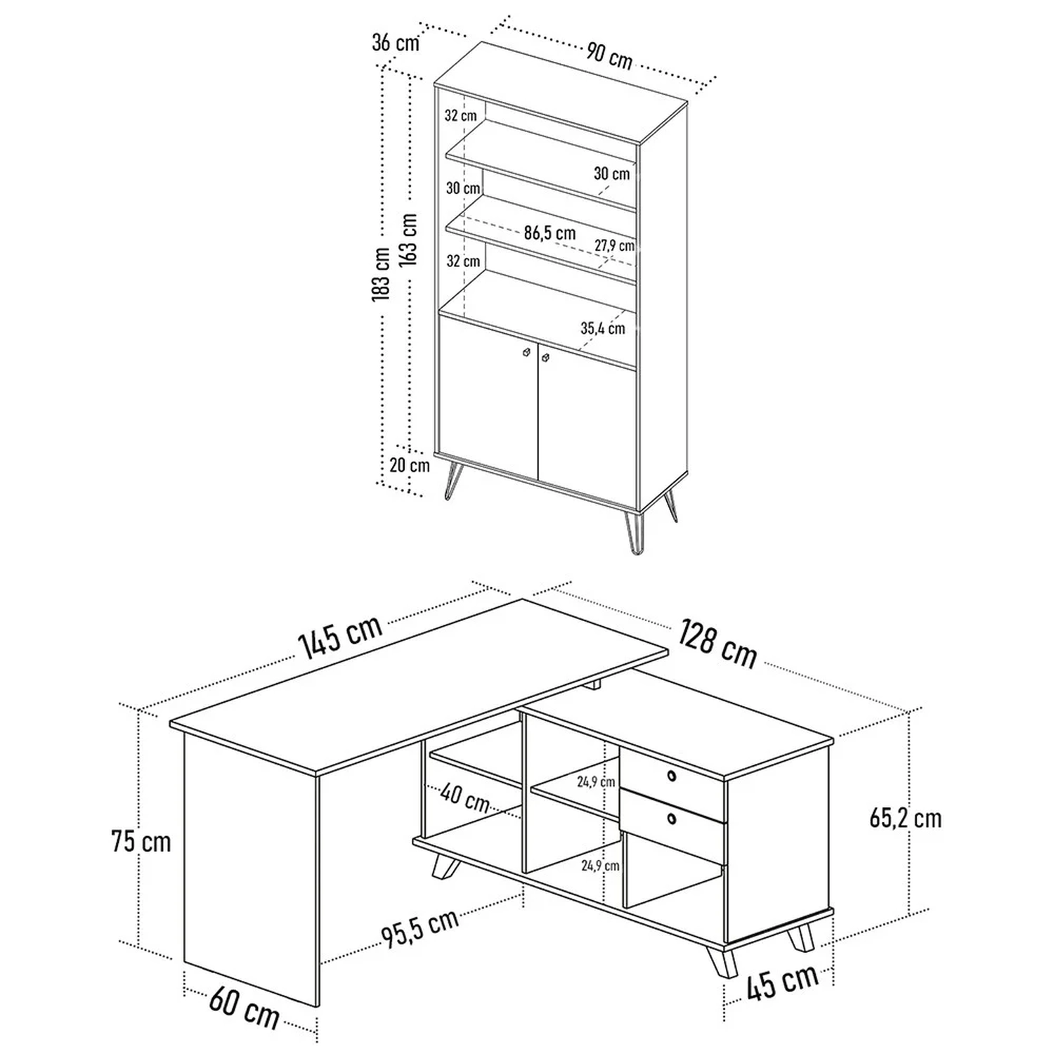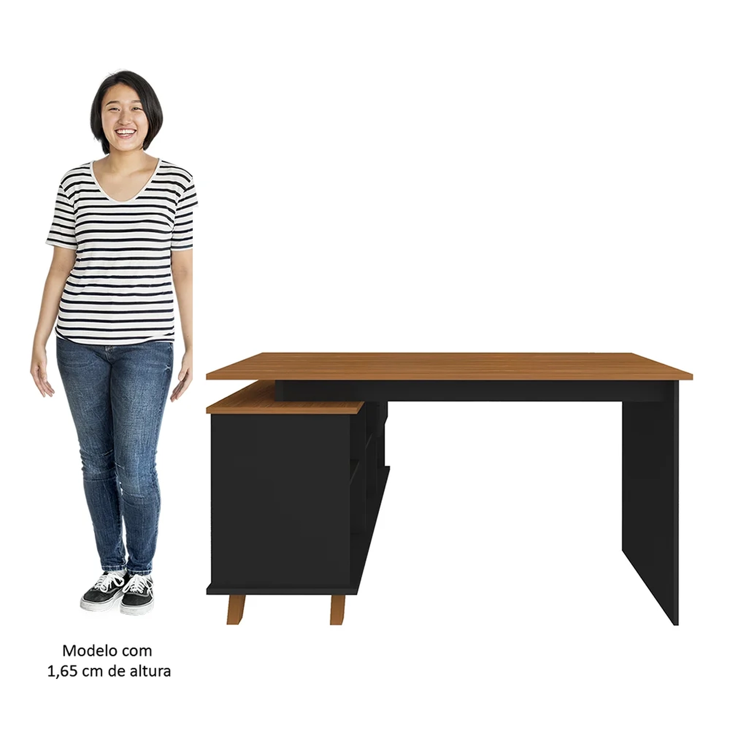 Com a Mesa Escrivaninha em L Golden e Estante Livreiro 2 Portas Lit Freijó/Preto, da Mpozenato, a sua rotina no escritório ou home office será muito mais produtiva e agradável.