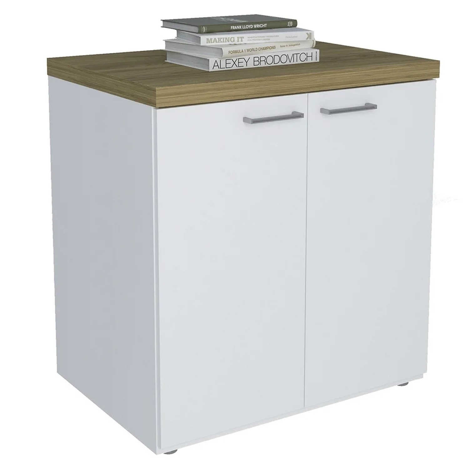 Atualize seu escritório em um espaço de trabalho elegante e funcional com a Mesa Escrivaninha em L Sharp e Balcão 70cm 2 Portas Tok A06 Olmo/Branco , da Mpozenato.