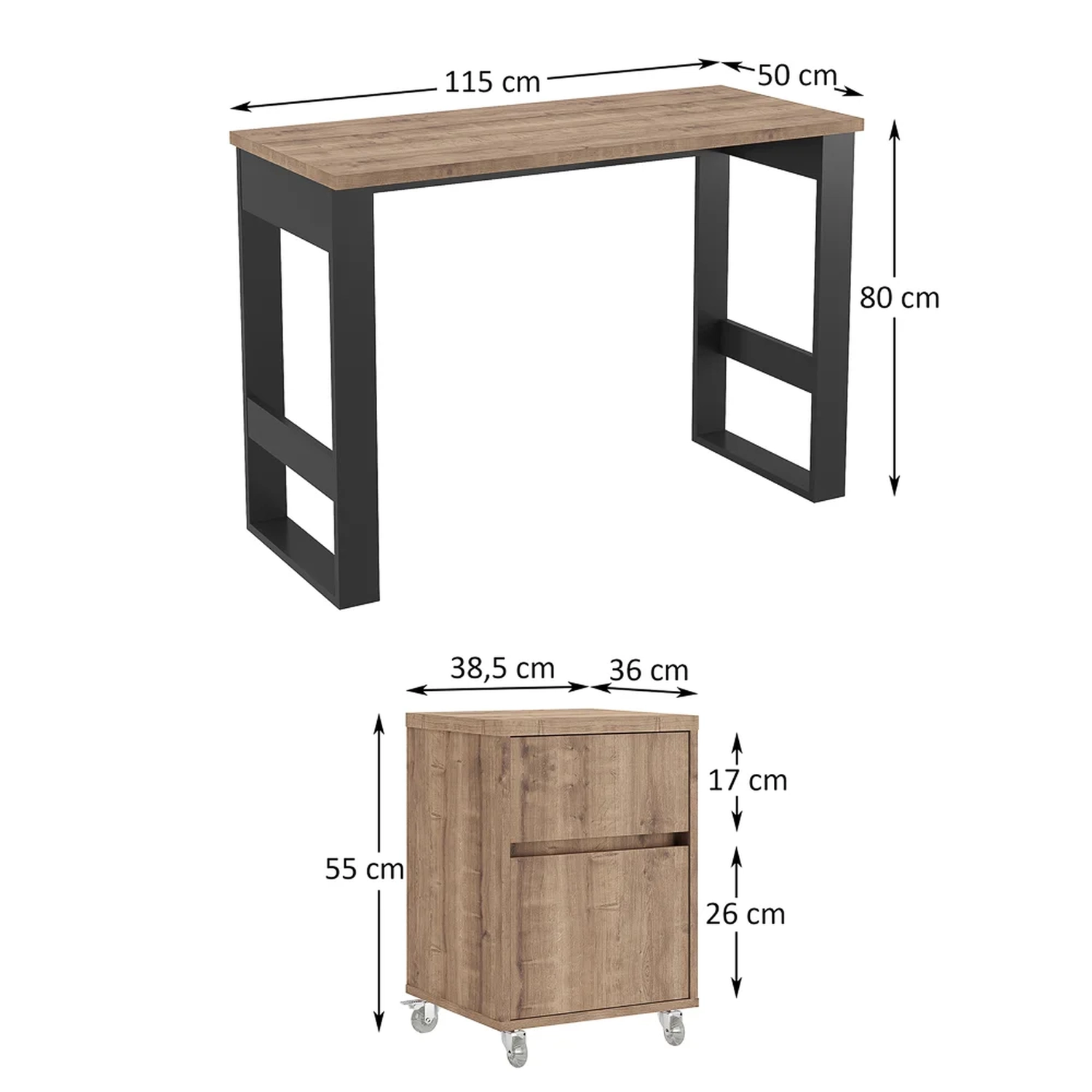Dimensões do Produto: Mesa: 115 x 80 x 50 cm. Armário: 38 x 55 x 36 cm. Peso: Mesa: 16 Kg/Armário: 14 Kg.