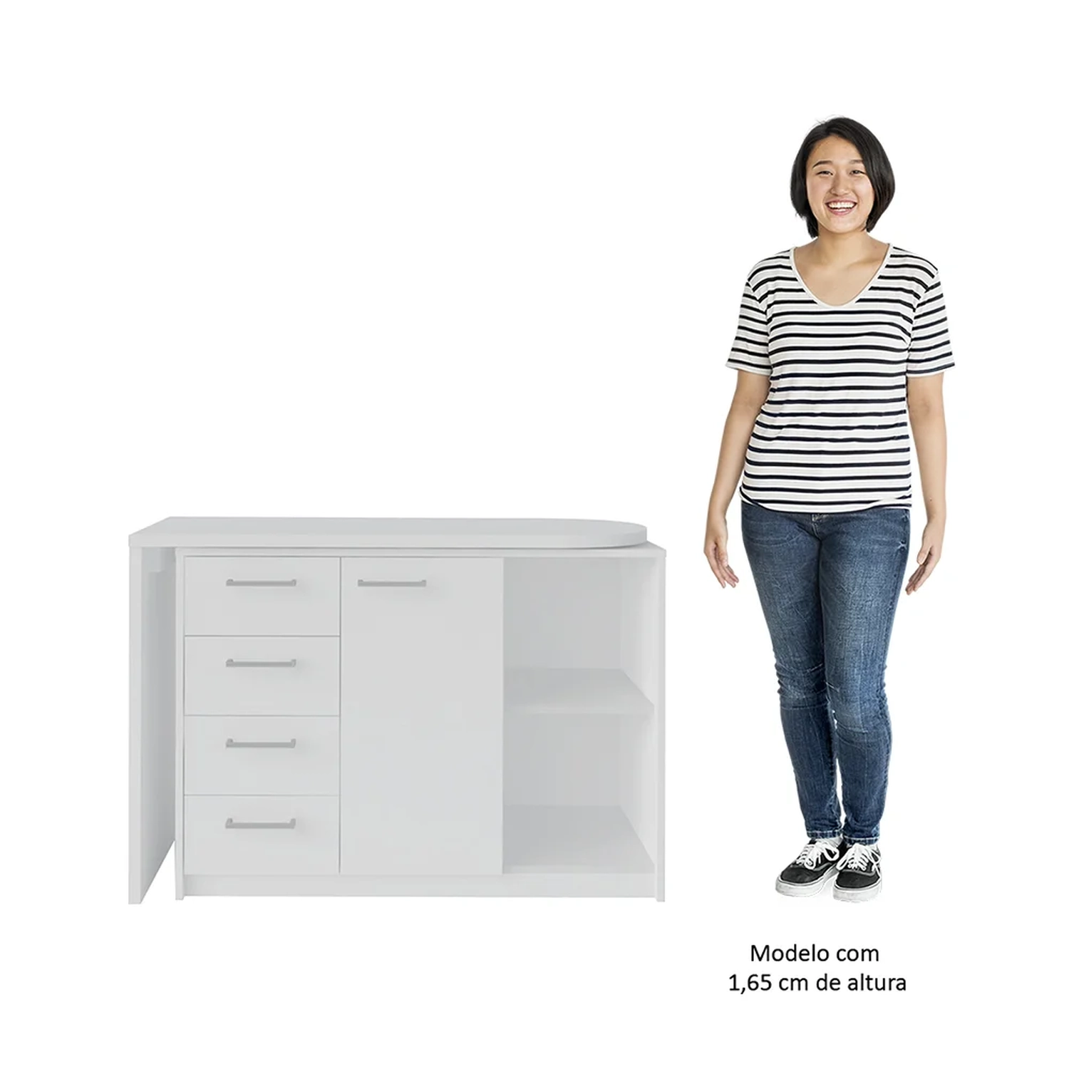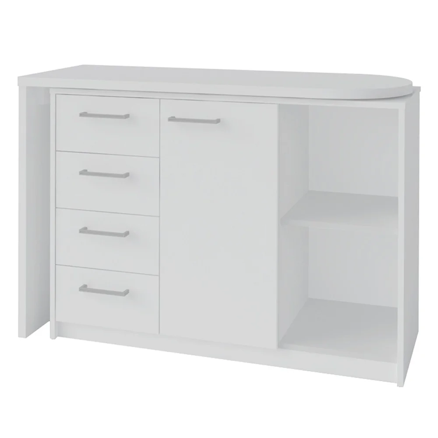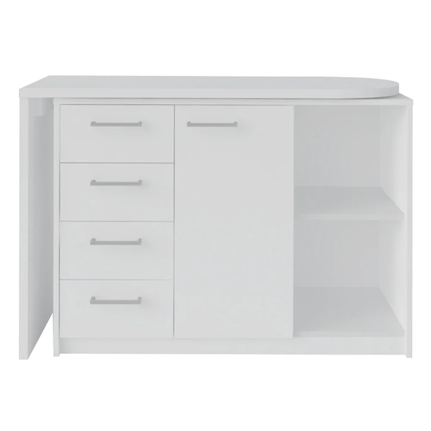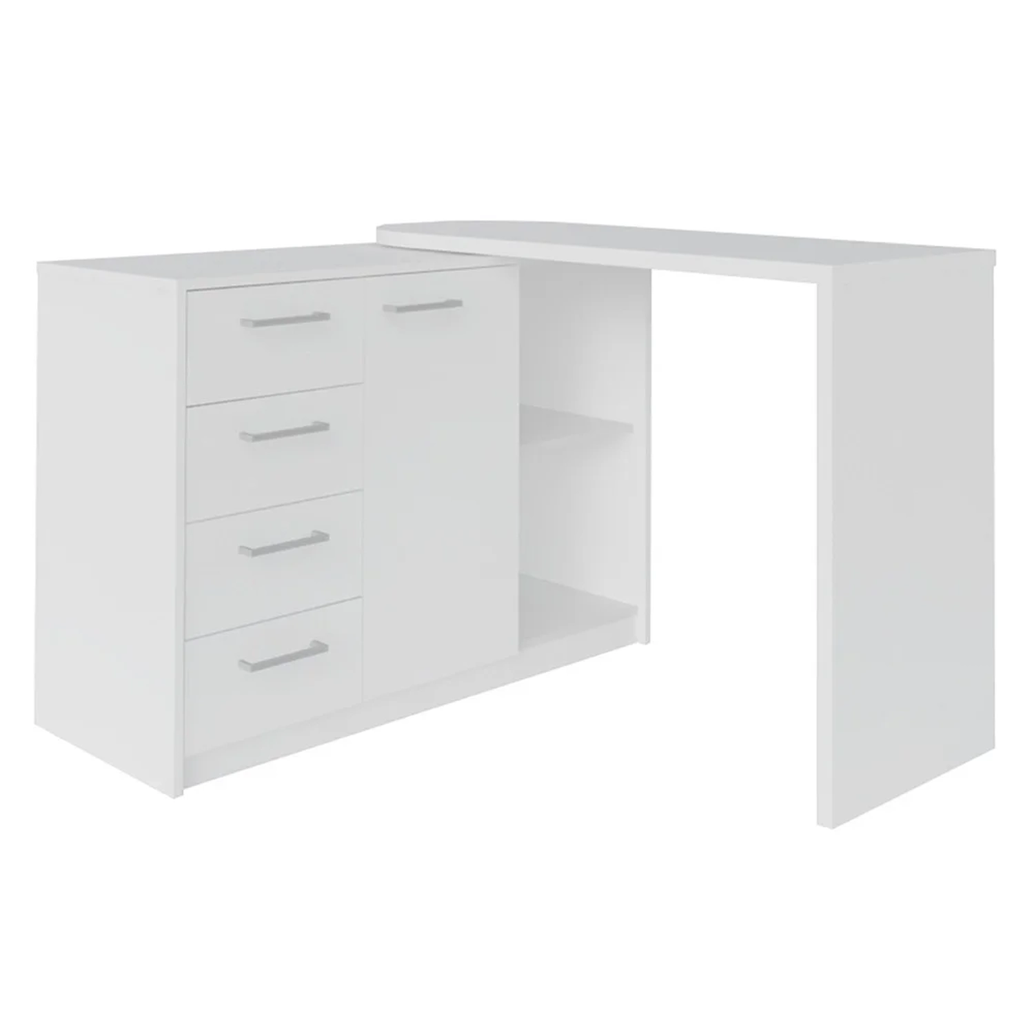 - Mesa com tampo superior móvel, formando o design em L.