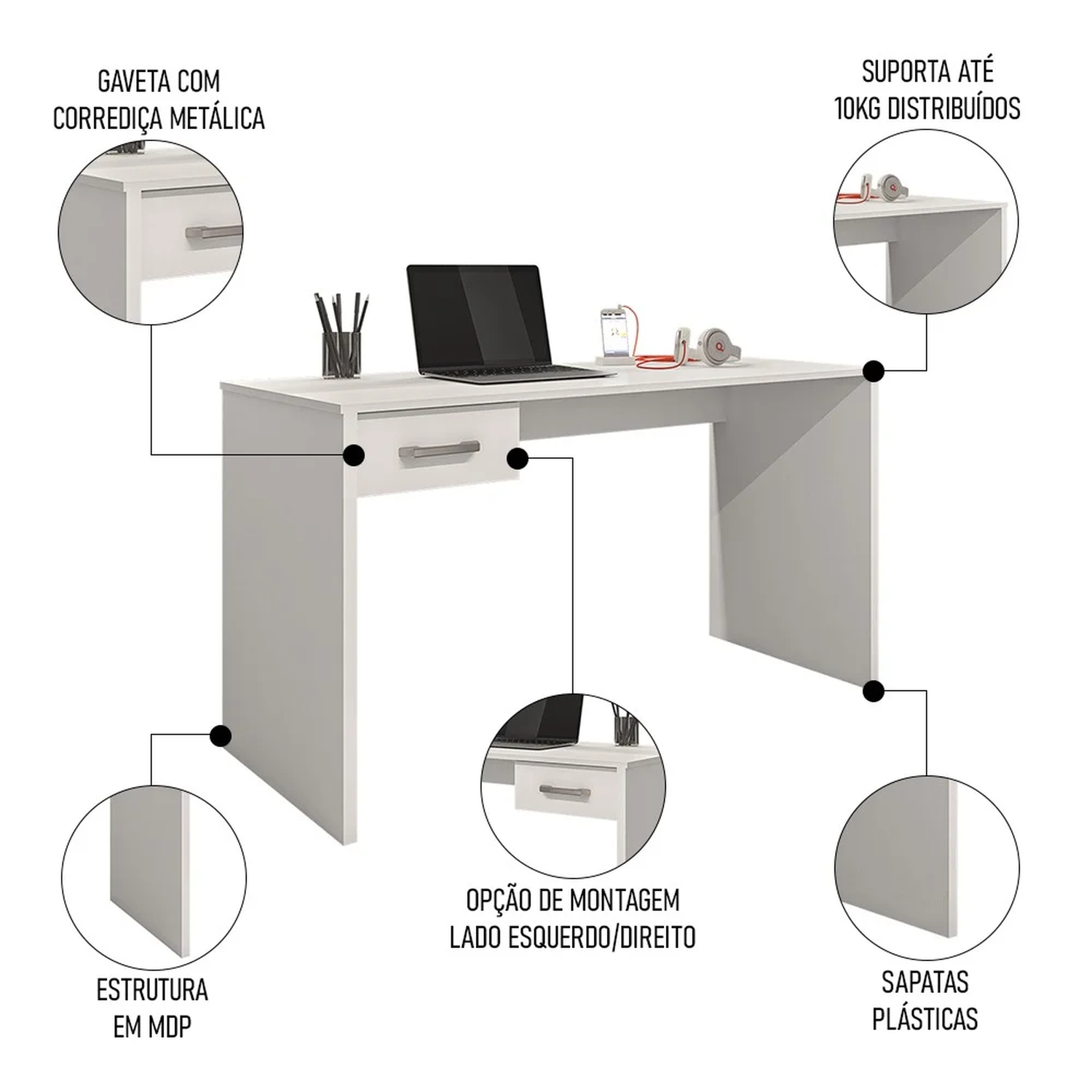 Conteúdo da Embalagem: 1 Mesa, 1 Gaveta.