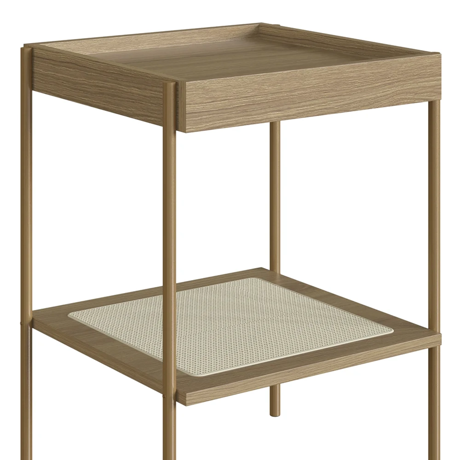 Confira a Mesa Lateral Com Prateleira Pé Metal Arlo A10 Hanover/Dourado, da Mpozenato, a opção perfeita para quem deseja estilo e qualidade.