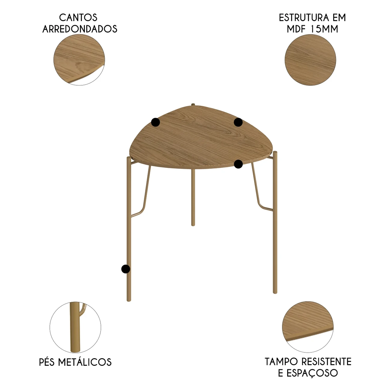 Mesa Lateral Para Sala Pés Metálicos Kit 2 Blen Louro/Dourado I06 - Mpozenato