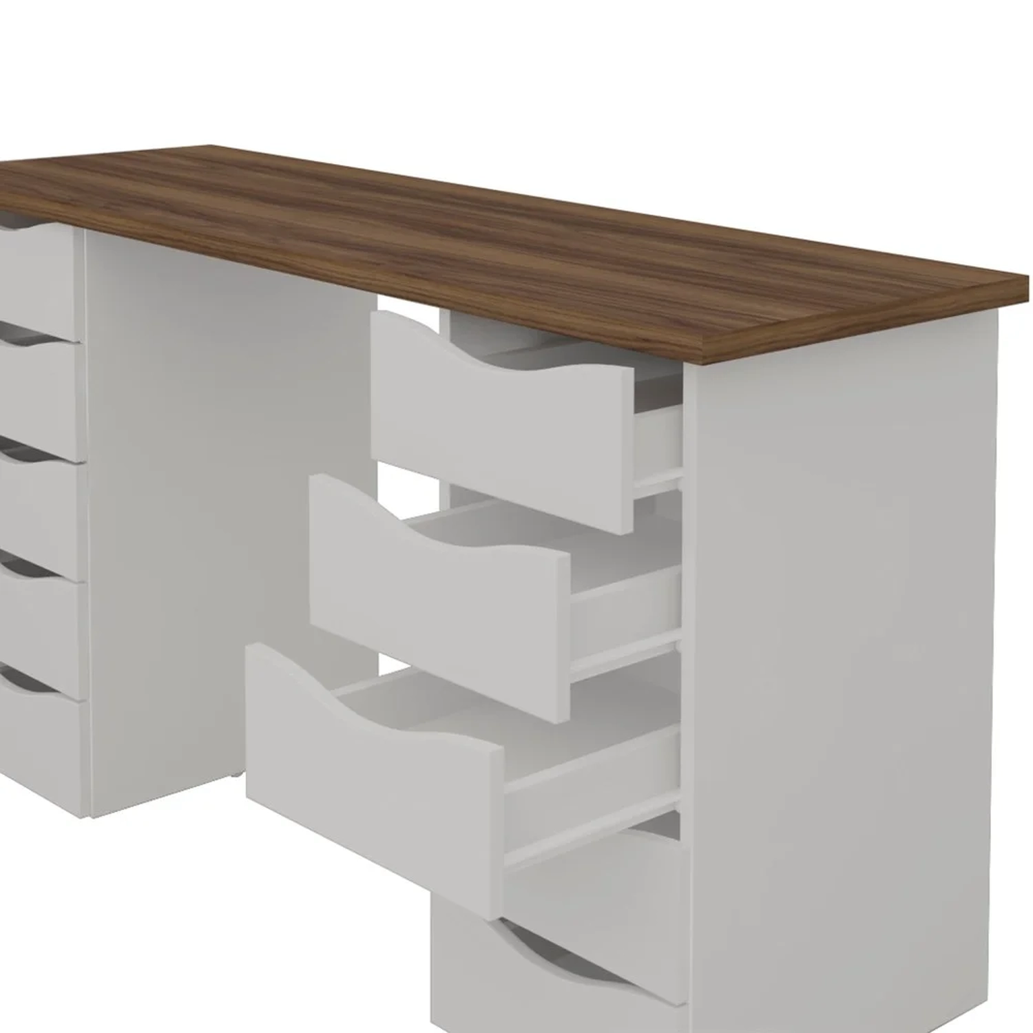 Pensando nisso, a Mesa para Computador Escrivaninha Due Web foi desenvolvida exatamente pra você, que quer dar um toque de elegância no seu cantinho de estudos ou home office sem abrir mão de manter tudo organizado. Ela possui tampo em MDP de 25 mm e 15 mm nas peças mais finas com revestimento em BP que prolonga a vida útil do produto.Ah, ainda conta com 10 gavetas para organizar seus pertences, deixando o ambiente ainda mais belo e prático, demais, né?