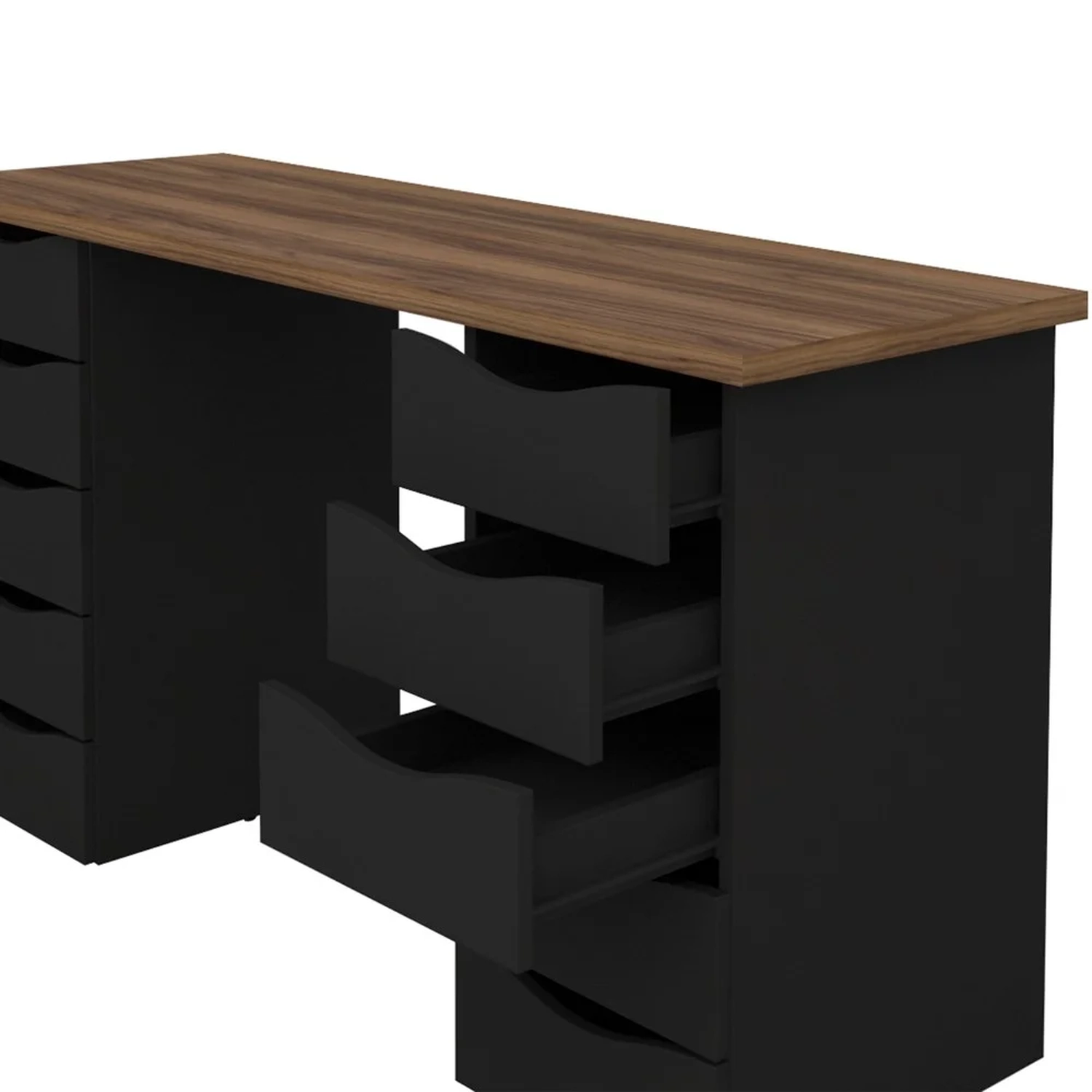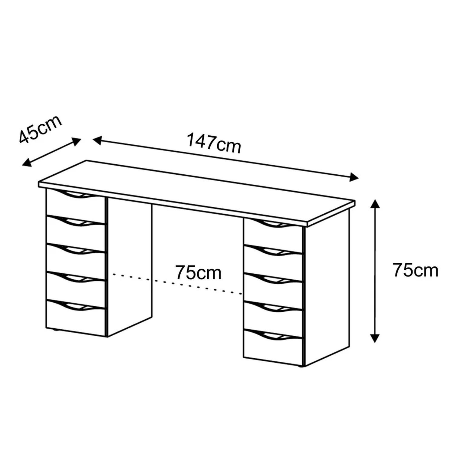 Pensando nisso, a Mesa para Computador Escrivaninha Due Web foi desenvolvida exatamente pra você, que quer dar um toque de elegância no seu cantinho de estudos ou home office sem abrir mão de manter tudo organizado. Ela possui tampo em MDP de 25 mm e 15 mm nas peças mais finas com revestimento em BP que prolonga a vida útil do produto.Ah, ainda conta com 10 gavetas para organizar seus pertences, deixando o ambiente ainda mais belo e prático, demais, né?