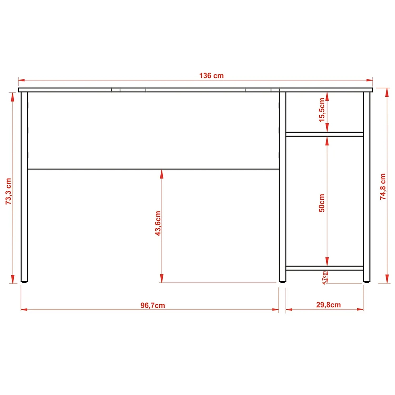 Largura: 136 cm.