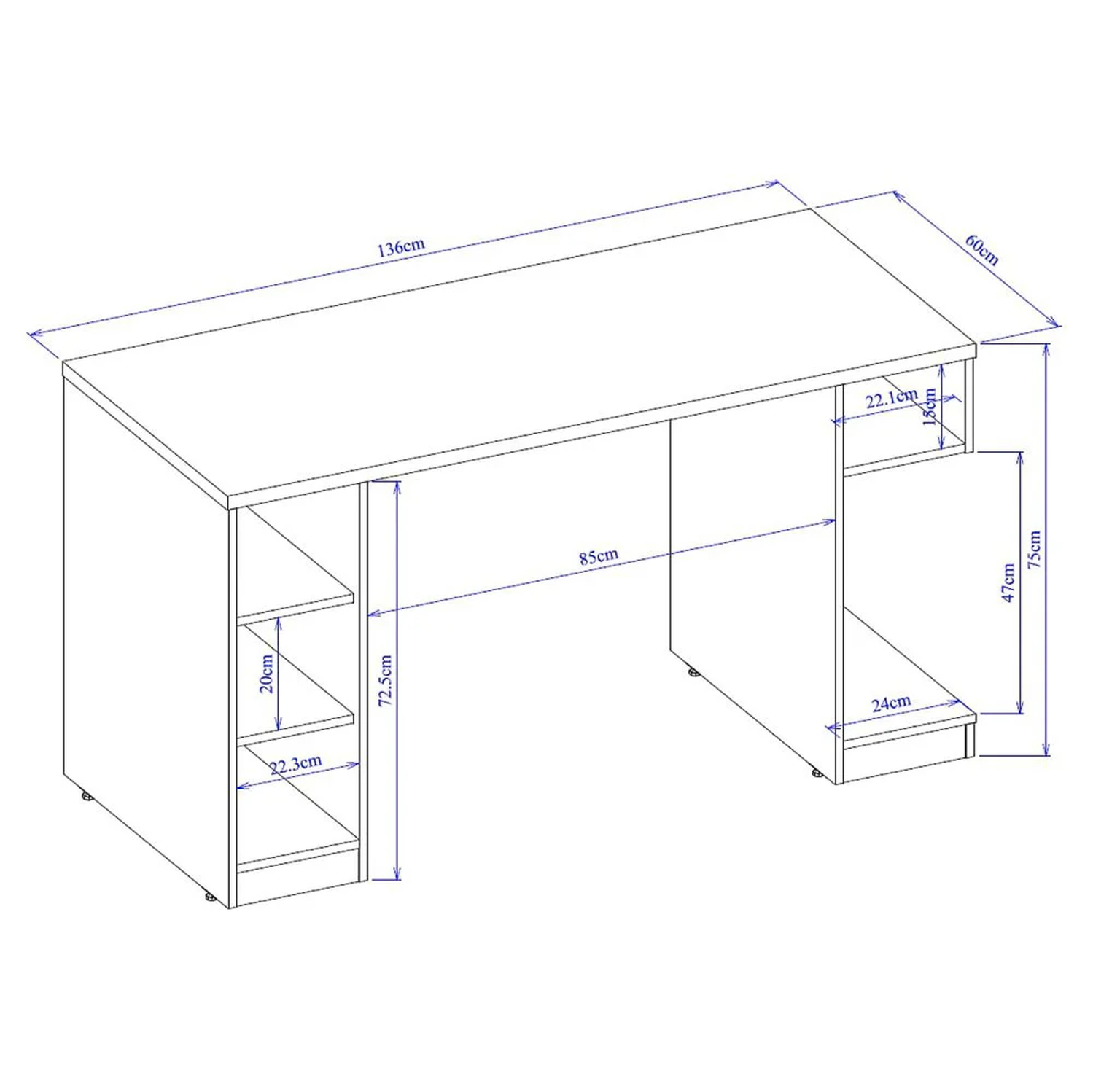 Peso Suportado: Tampo: 70 kg distribuídos / 10 kg por prateleira.