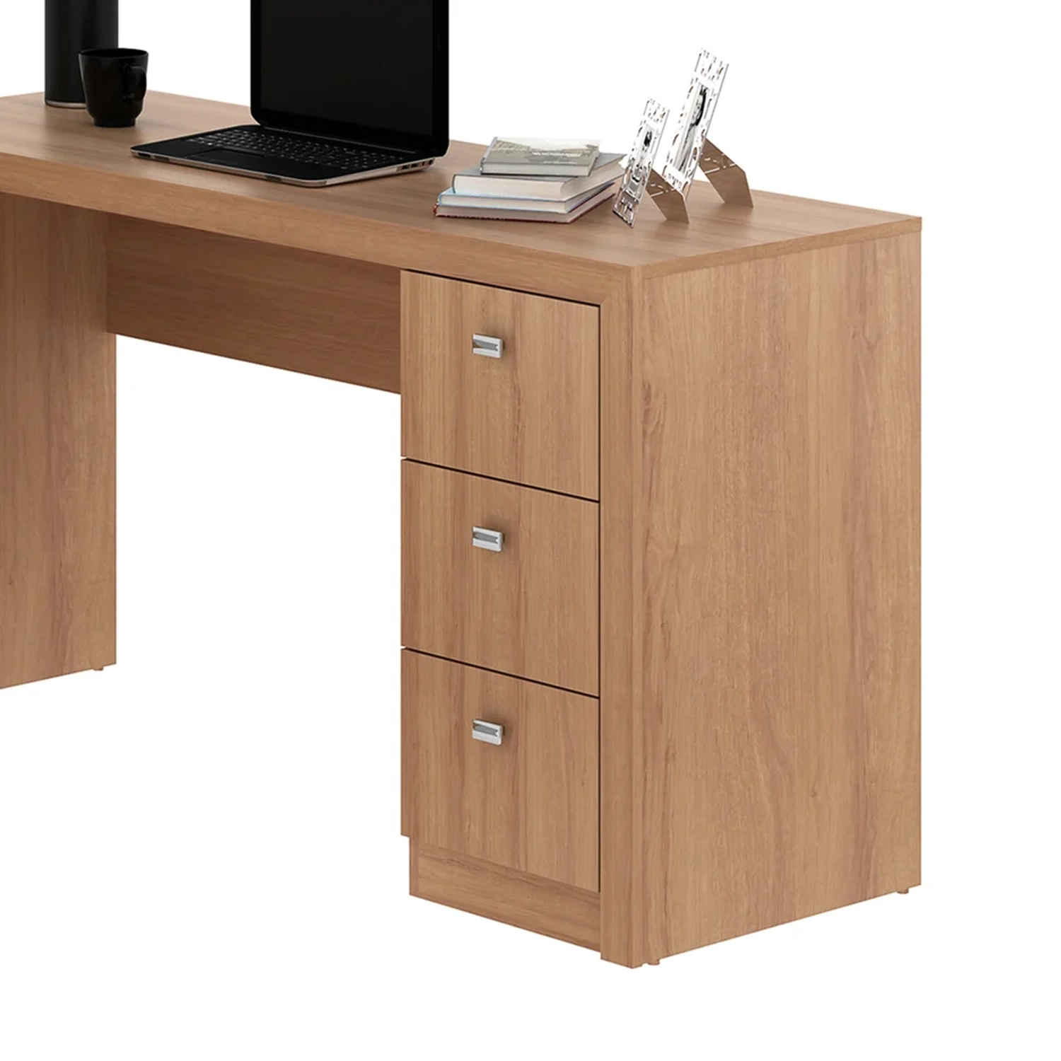 Mesa Para Escritório 2 Portas 3 Gavetas ME4100 Amêndoa - Tecno Mobili 17962
