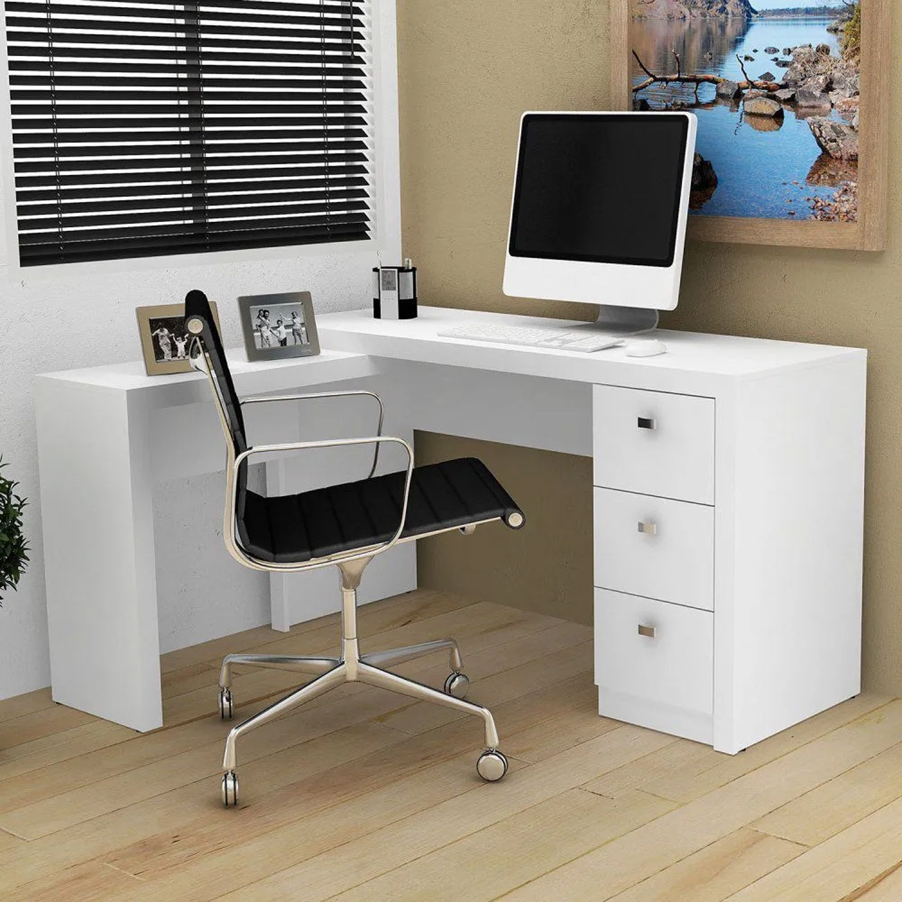 A Mesa Para Escritório 3 Gavetas ME4101 Branco da Tecno Mobili é uma mesa perfeita para o seu escritório ou Home Office, pois ela tem uma mesa lateral para apoio que vai te ajudar a desempenhar seus trabalhos de uma forma bem mais dinâmica, além disso apresenta 3 gavetas com amplo espaço interno para armazenar documentos e pertences.