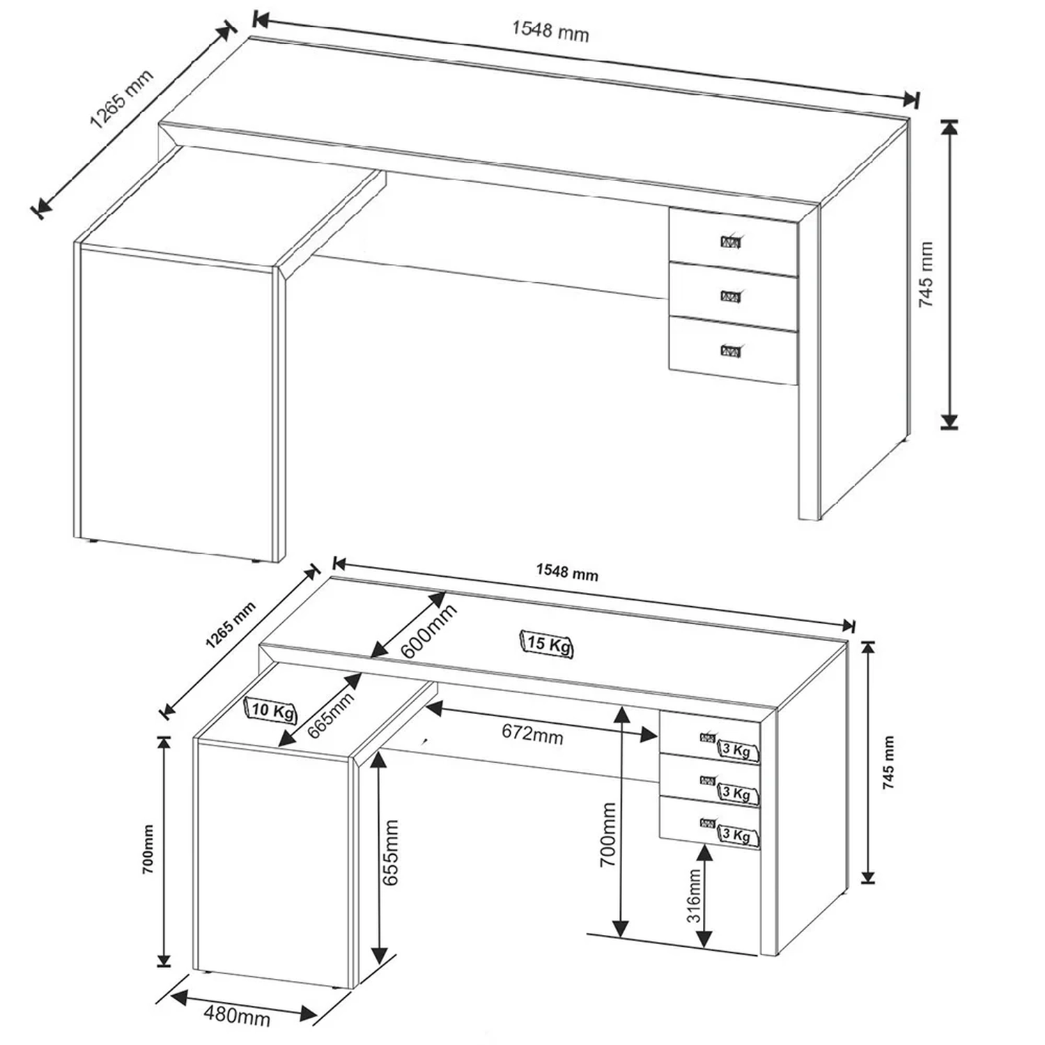 Sendo assim, a Mesa para Home Office com 03 gavetas ME4106 é uma mesa perfeita para o seu escritório ou Home Office! Além da mesa principal ela tem uma mesa aparadora que vai tornar sua rotina ainda mais dinâmica e três gavetas laterais para melhor organização.