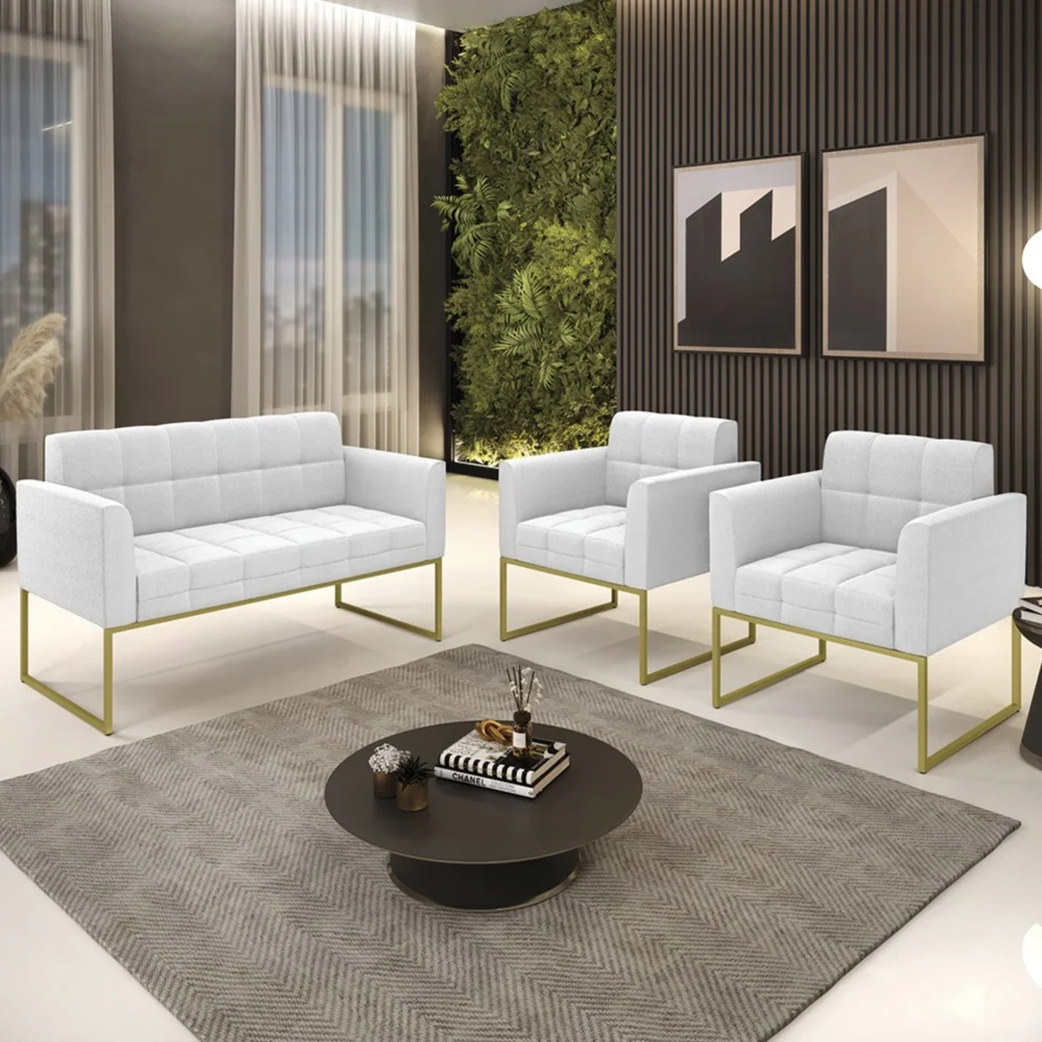 A Namoradeira e 2 Poltronas Industrial Dourado Ana Boucle Off White, da Ibiza é o conjunto ideal para quem busca beleza, conforto e versatilidade. Você pode usar na sua Sala De Estar, recepção ou qualquer outro ambiente que desejar.
