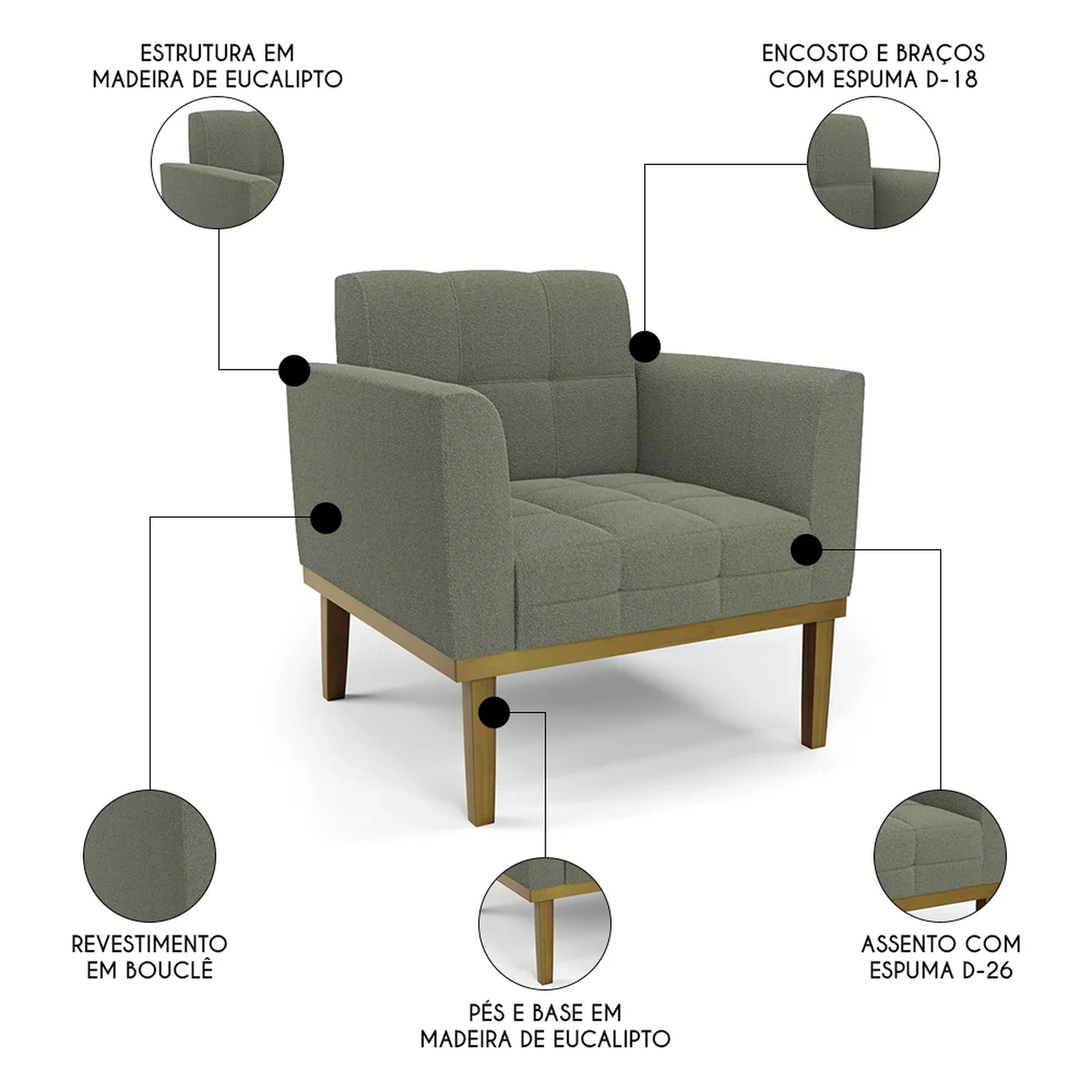 Material dos Pés: Madeira Eucalipto.