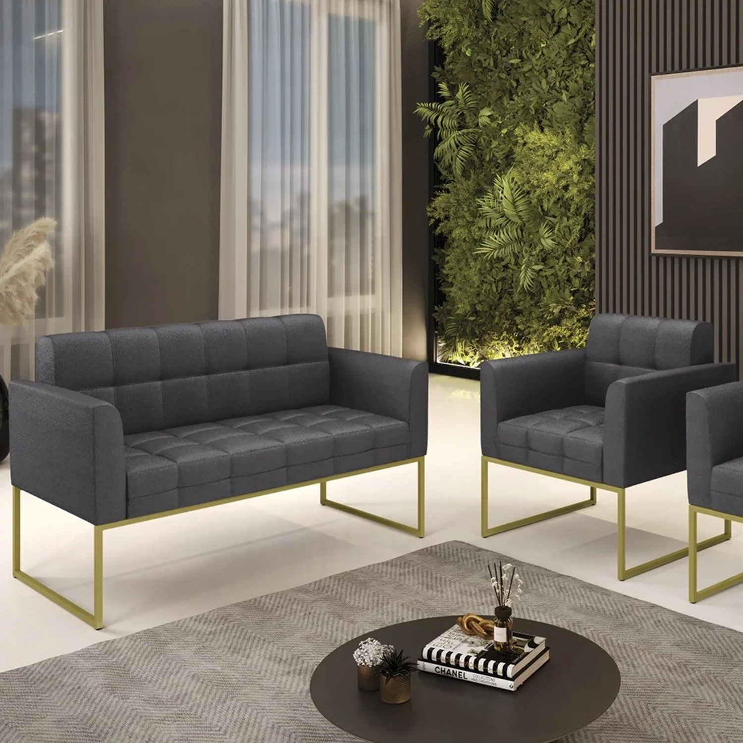 A Namoradeira e Poltrona Industrial Dourado Ana Boucle Grafite, da Ibiza é o conjunto ideal para quem busca beleza, conforto e versatilidade. Você pode usar na sua Sala De Estar, recepção ou qualquer outro ambiente que desejar.