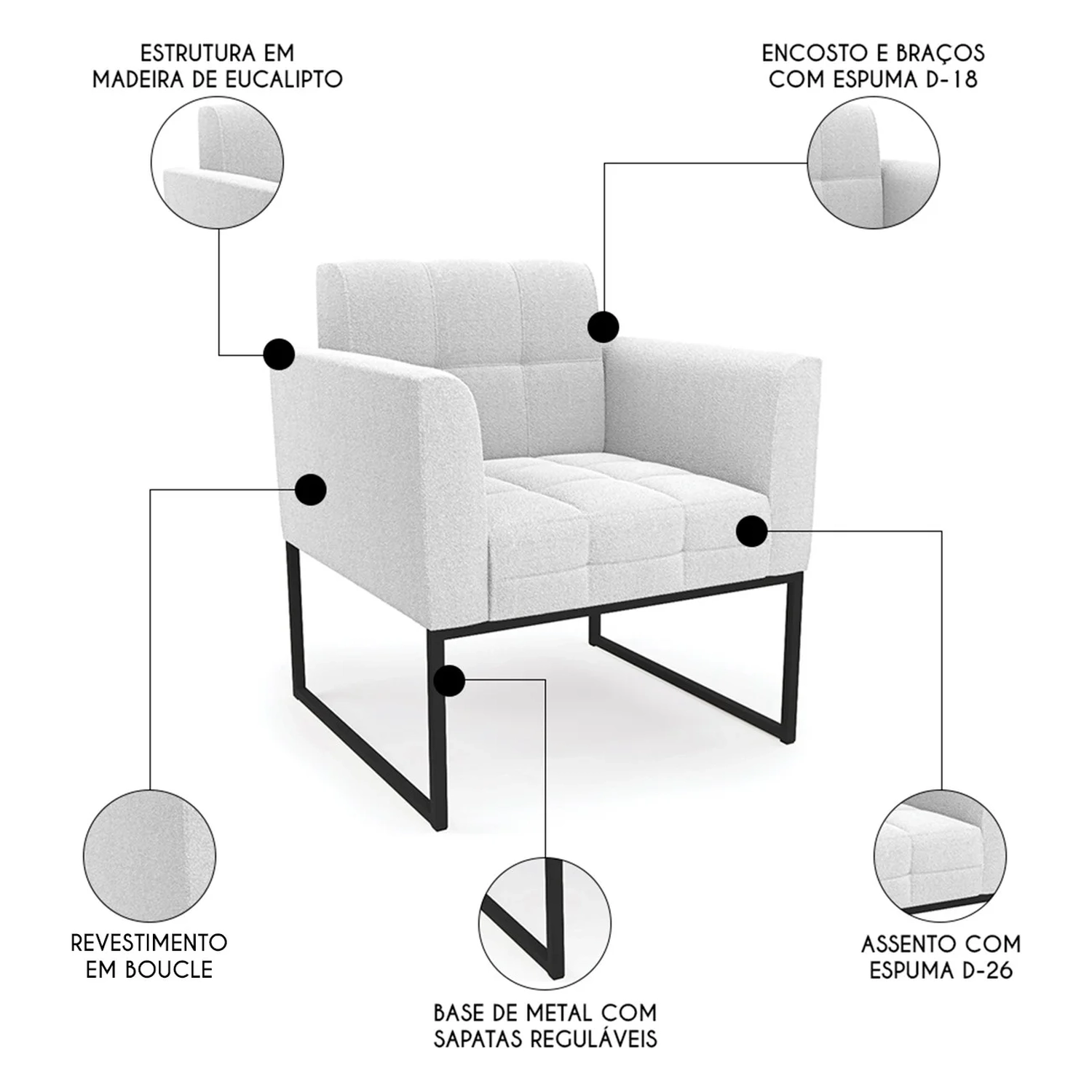 A Namoradeira e Poltrona Industrial Preto Ana Boucle Off White, da Ibiza é o conjunto ideal para quem busca beleza, conforto e versatilidade. Você pode usar na sua Sala De Estar, recepção ou qualquer outro ambiente que desejar.