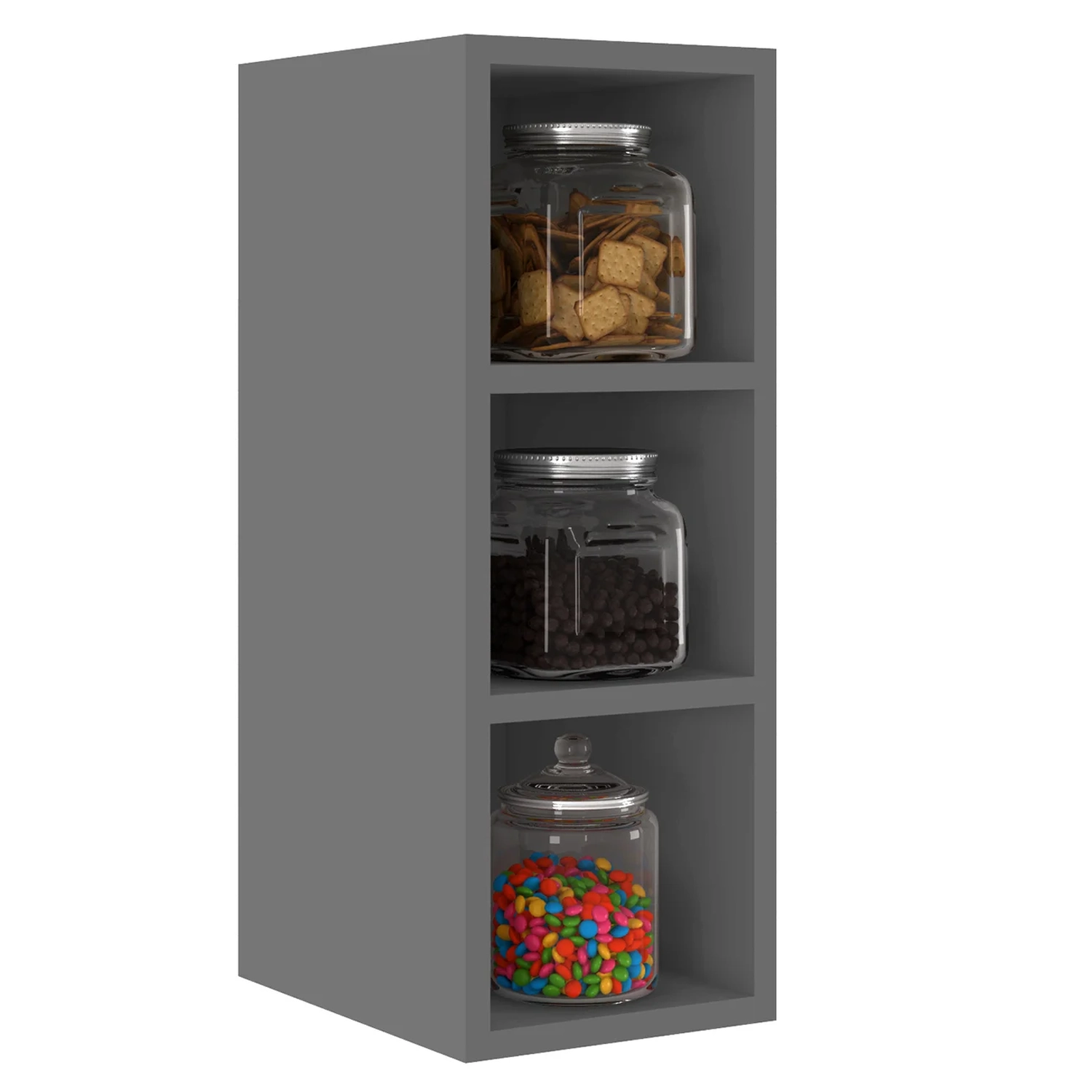 Uma Cozinha bonita e funcional facilita na rotina e no preparo das refeições, tornando o dia a dia mais agradável. O Nicho Aéreo Adega Vertical 20cm Pérola Z34 Grafite da Mpozenato é um móvel versátil e compacto perfeito para sua casa.
