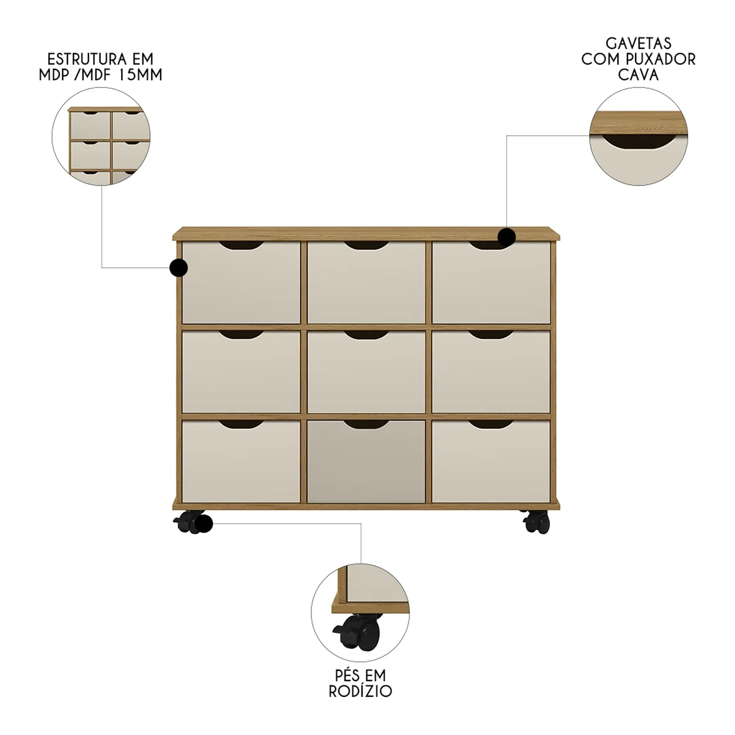 Quantidade de Gavetas: 9 Gavetas.