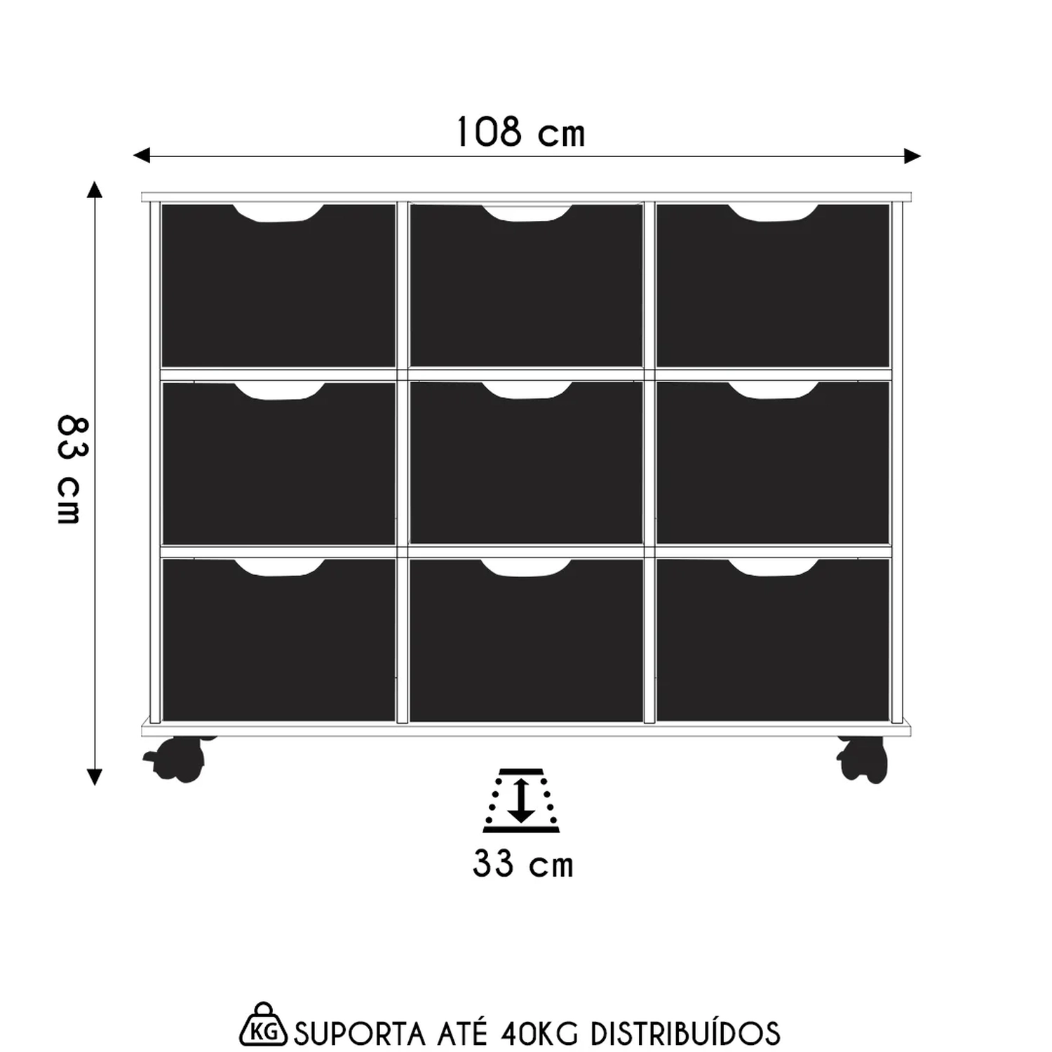 Peso suportado: 40 kg Distribuídos.