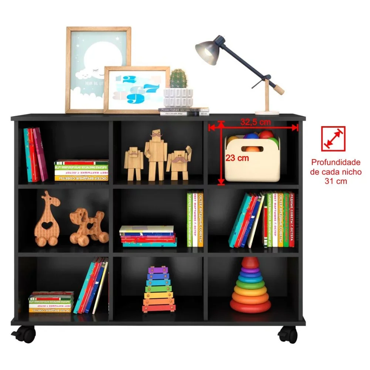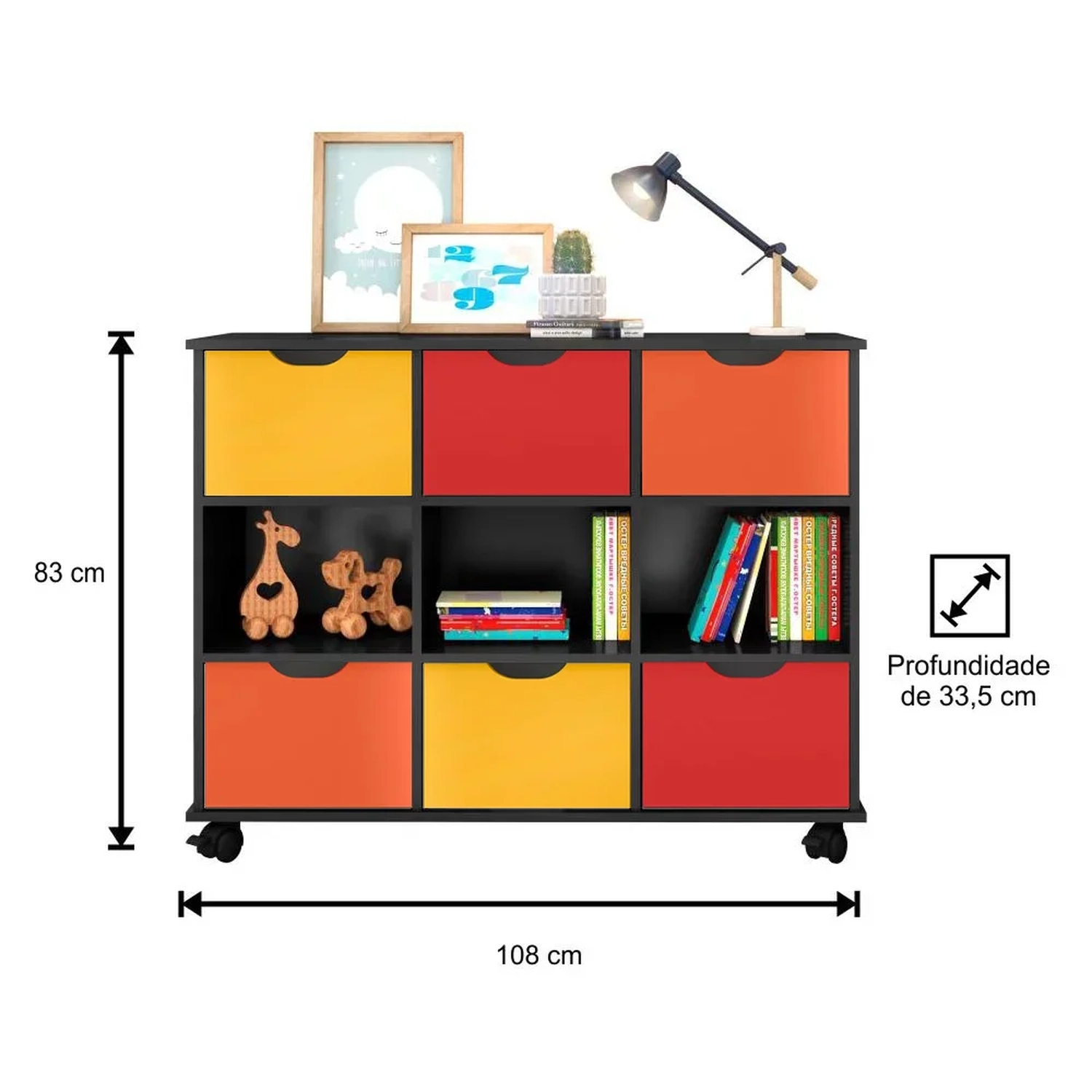 Um móvel versátil e funcional que pode ser usado em diversos ambientes da casa. Ele possui 3 Nichos Abertos para livros, objetos decorativos, brinquedos ou o que mais você quiser. Além disso o Nicho Organizador, ele conta com 6 gavetas com detalhe curvado que dispensa puxadores e dá um design minimalista ao móvel. O Nicho com Gavetas é feito de MDP de alta qualidade e tem acabamento em pintura UV que garante maior durabilidade e resistência. Ah e ele ainda possui rodízios que facilitam a movimentação e a limpeza do espaço.