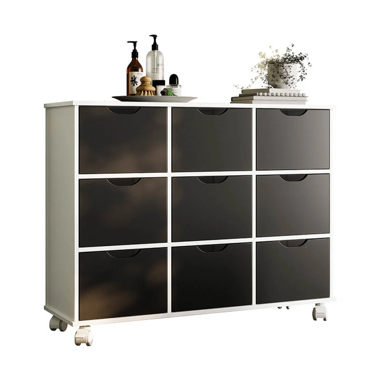 O Nicho Organizador com Rodízios Toys 9 Gavetas Q01 Branco/Preto, da Mpozenato é ideal para você organizar sua casa, e ainda decorar!