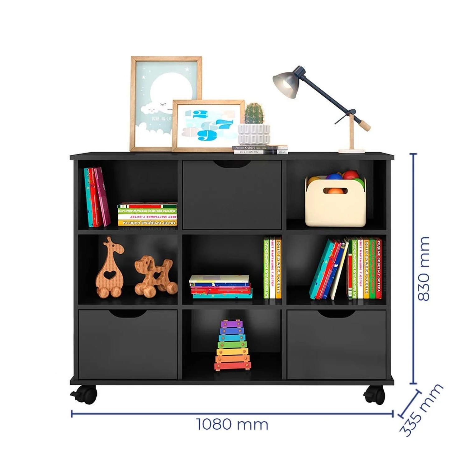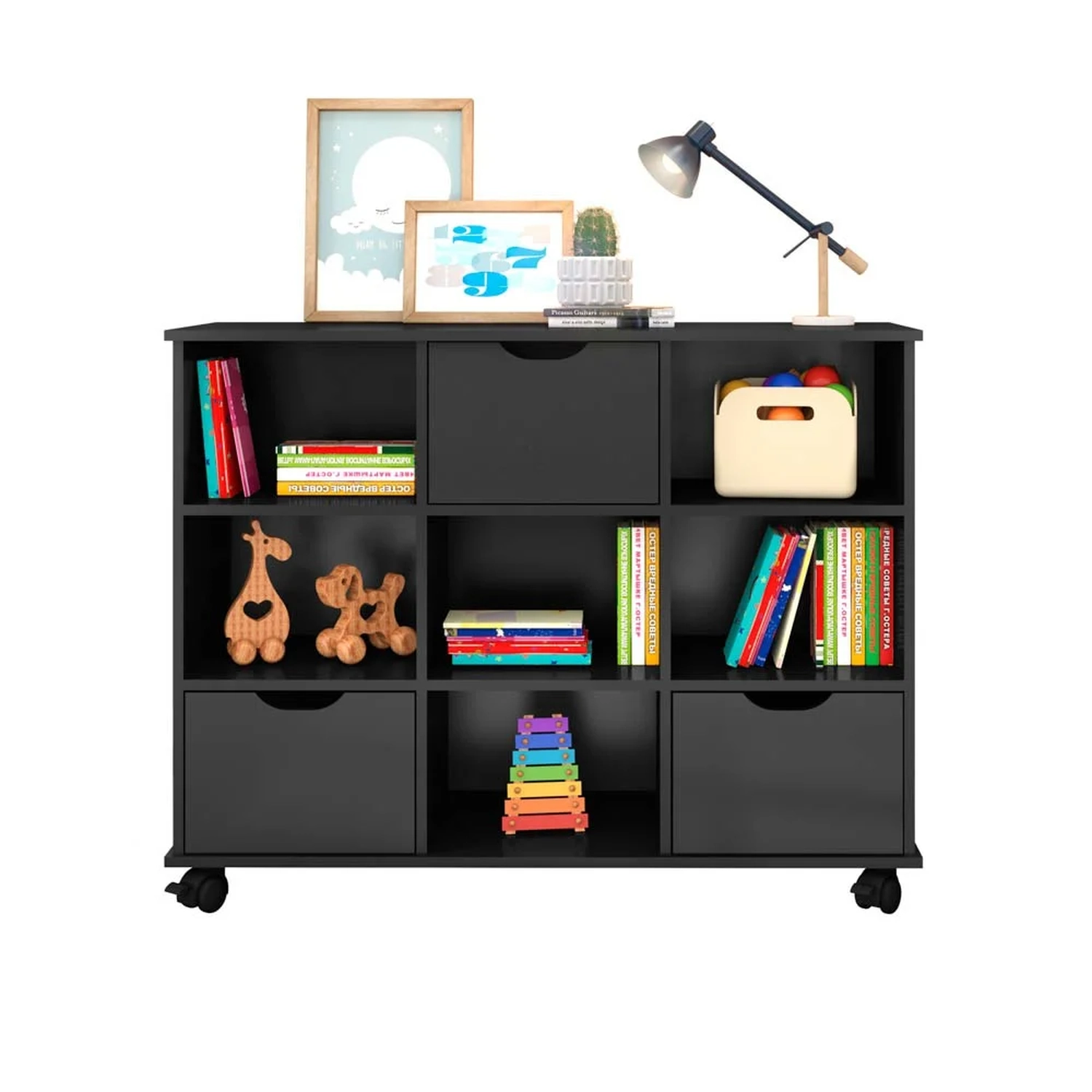 O Nicho Organizador com Rodízios vem para facilitar esse processo! Ele é um produto multifuncional que pode ser utilizado em diversos ambientes, como quarto infantil, sala de estar ou sala de brinquedos, o seu design clean permite que seja facilmente combinado com outros móveis para que seu ambiente fique ainda mais bonito! Ele é produzido em MDP 15mm, acabamento em Pintura UV, que dá destaque à cor e ainda possui 4 rodízios que facilitam movê-lo de lugar, quando necessário. Além disso, acompanha Kit de 9 gavetas que encaixam perfeitamente nos nichos, apresentam puxadores em cava e contam com fitas de feltro na parte inferior para não danificar o móvel.
