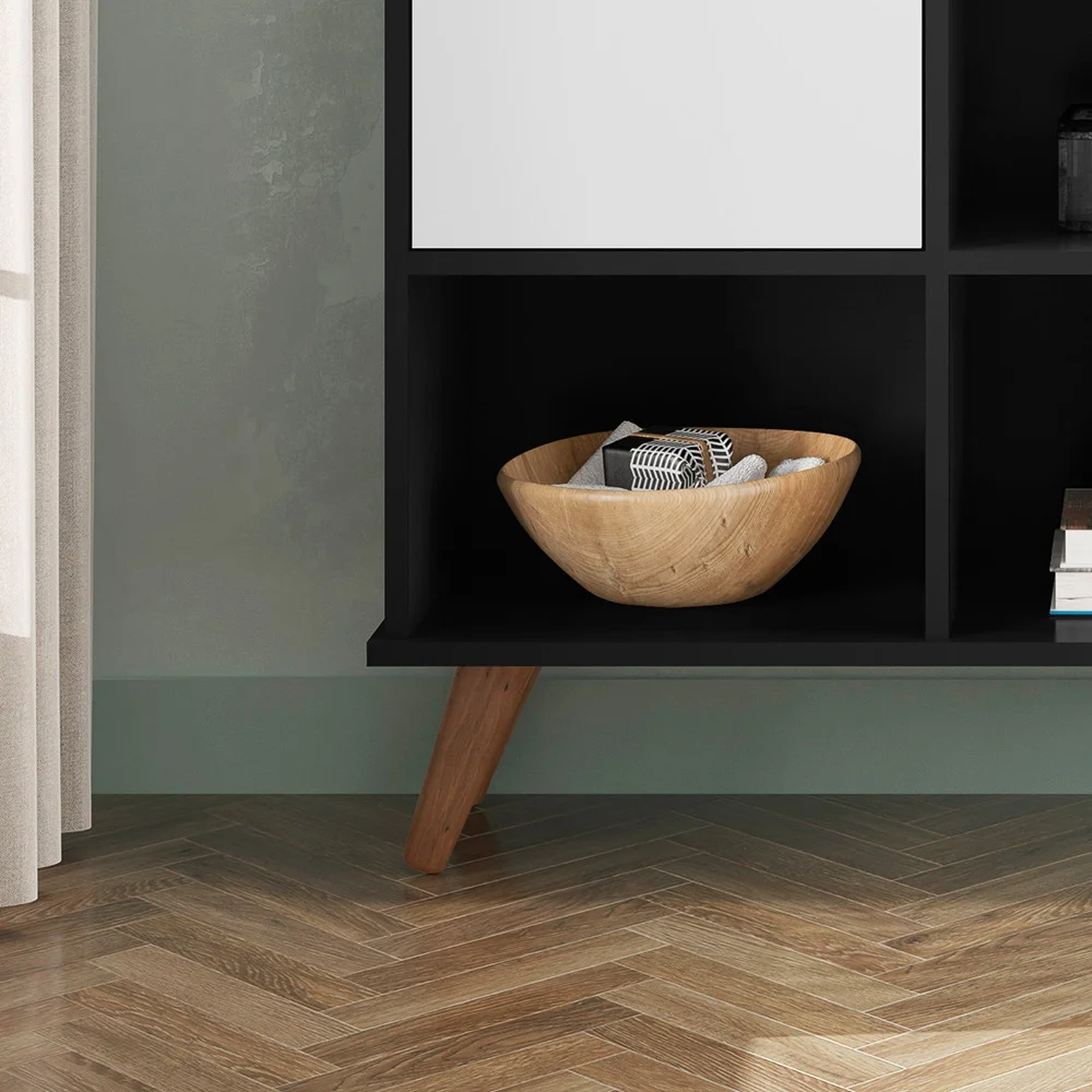 Características do Produto Material da Estrutura: MDP 15 mm. Material do Fundo: MDF 3 mm. Peso suportado: 30 kg distribuídos. Tonalidade: Preto/Branco. Acabamento: Pintura UV Atóxica. Escala de Brilho: Preto: Fosco/Branco: Brilho. Possui Nichos: Sim. Quantidade de Nichos: 6 Nichos. Possui Gavetas: Sim. Quantidade de Gavetas: 3 Gavetas. Possui Rodízios: Não. Possui Pés: Sim. Quantidade de Pés: 4 Pés. Tipo de Pés: Retrô. Diferenciais: - Produto multifuncional. - Puxador modelo cava. - Gavetas com fitas de feltro para não riscar o produto. Sistema de Montagem: Minifix / Cavilhas / Parafusos. Manual de Montagem: Sim. Complexidade da Montagem: Baixa. Conteúdo da Embalagem: 1 Nicho Organizador. Volumes: 2 Volumes. Garantia do Fabricante: 3 meses contra defeito de fabricação. Montagem: Recomendamos que seja feita por um profissional. Recomendação de Limpeza: Pano levemente úmido e detergente neutro.