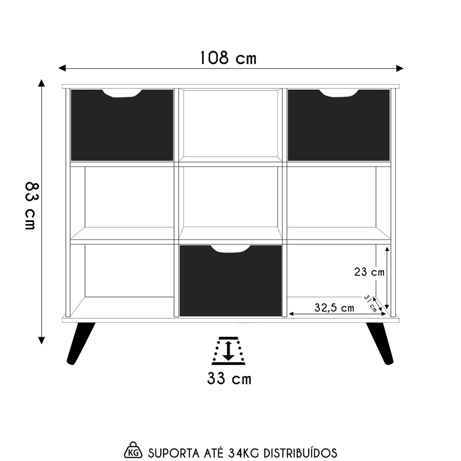 Peso suportado: 34 kg distribuídos.