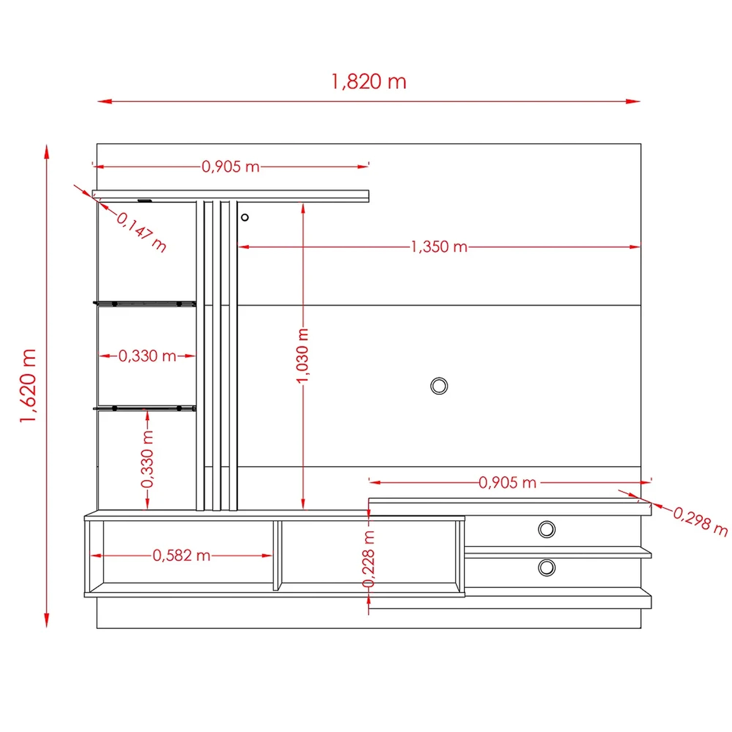 Espaço Para TV (Largura x Altura): 135 x 99 cm.