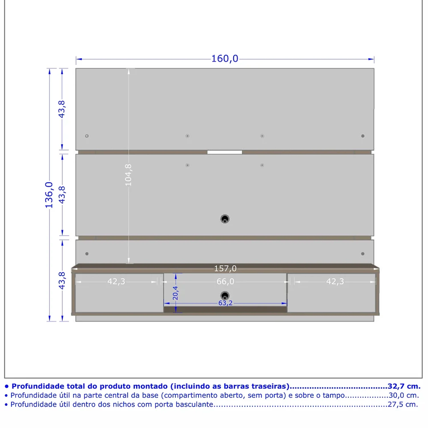 Espaço para TV: (Largura x Altura) 160 x 104 cm.