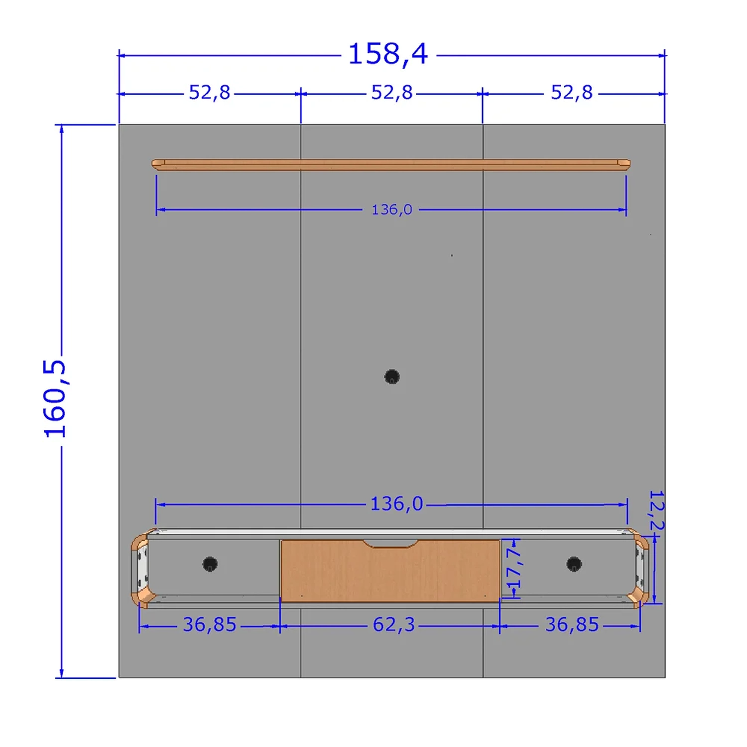 Sistema de Montagem: Minifix / Cavilhas / Parafusos.