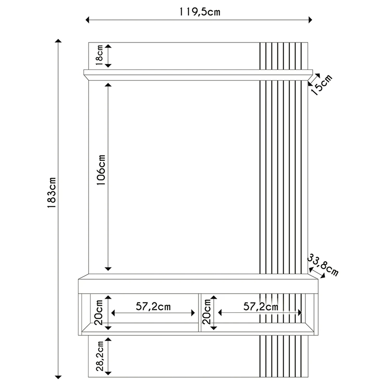 Largura: 119,5 cm.