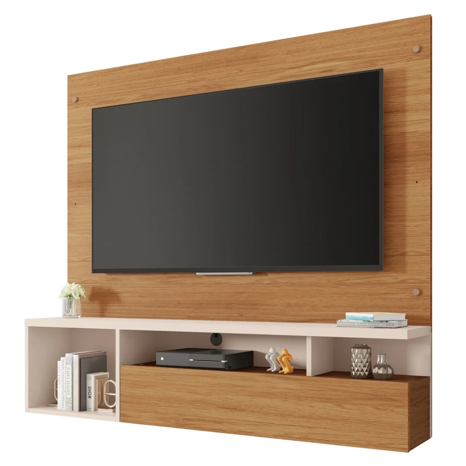 Projetado para TVs de até 55 polegadas, esse painel suspenso se destaca pela elegância bicolor em tons naturais que adiciona um toque de requinte a qualquer Sala de Estar ou painel para TV Quarto.