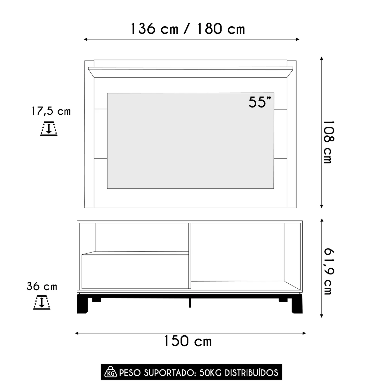 Suporta TV de até: 55 Polegadas.