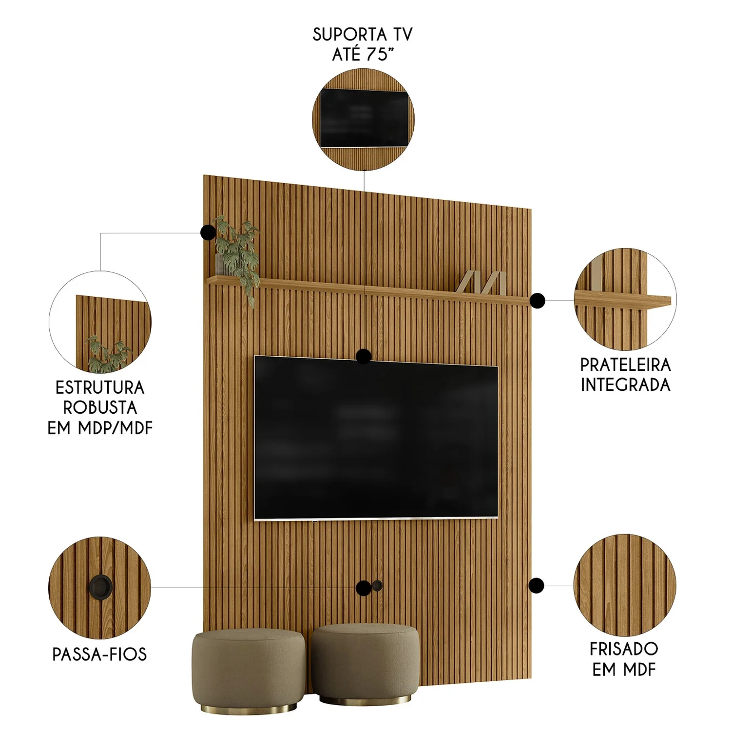 - Suporte para TVs de 75 polegadas.