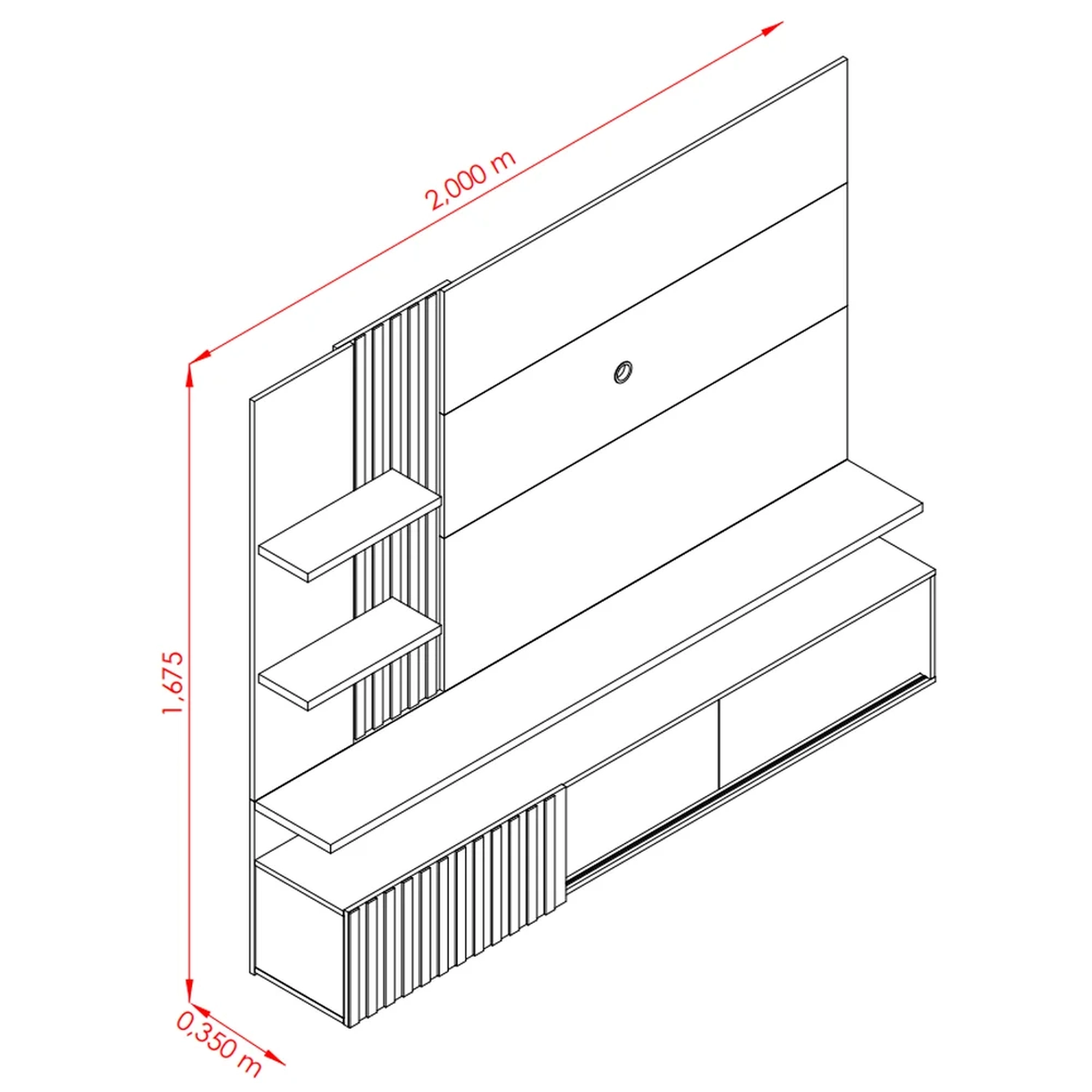 Espaço para TV: 136 x 116 cm (L x A).