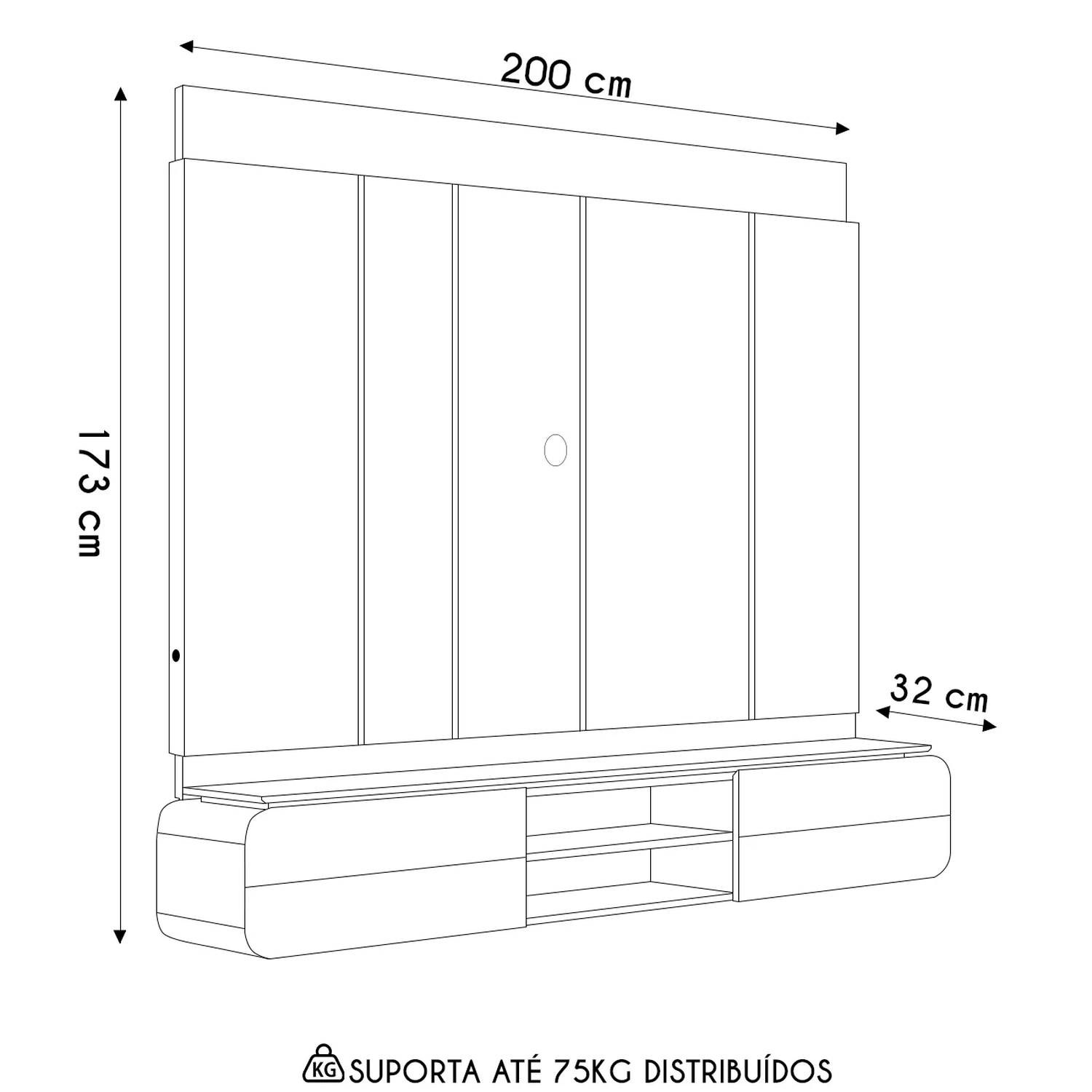 Este Painel Suspenso é perfeito para acomodar TVs de até 75 polegadas, criando um ponto focal moderno e marcante. O design chanfrado do painel adiciona uma sofisticação discreta, enquanto a iluminação LED embutida proporciona um clima acolhedor e convidativo. O tampo suspenso, ecoando o acabamento chanfrado, realça a estética refinada do móvel. O nicho, com design curvo, suaviza as linhas do painel, conferindo um toque contemporâneo. As portas basculantes, com frisos, são sinônimo de praticidade e bom gosto, mantendo a organização e a facilidade de acesso aos itens. Finalizando com pistão a gás, o Painel Home apresenta um design prático e elegante, promovendo uma transformação na sua Sala de Estar, para um espaço de puro requinte e modernidade.
