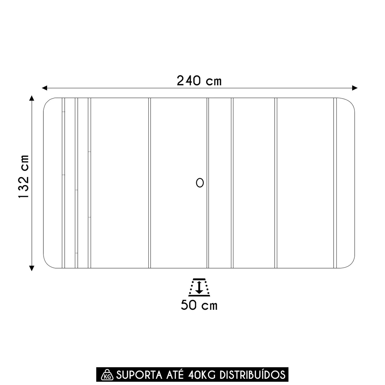 Peso Suportado: 40 kg Distribuídos.