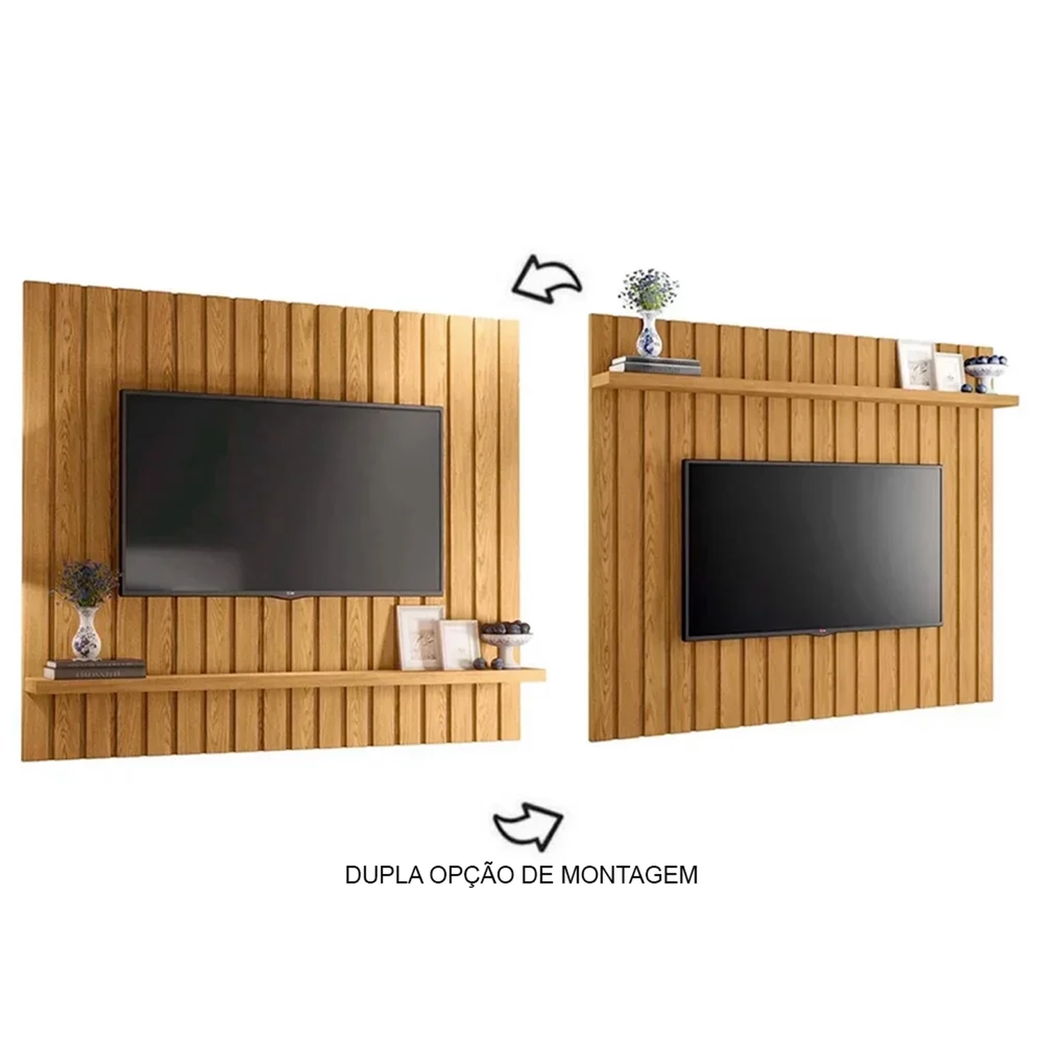 O Painel Para TV é uma ótima opção para quem busca um móvel moderno e sofisticado para a Sala De Estar. Ele possui um ripado que já vem montado de fábrica, garantindo um acabamento perfeito e uma instalação prática. Além disso, ele conta com uma prateleira robusta de 37mm de espessura, ideal para acomodar objetos decorativos. A estrutura do painel é feita em MDP e MDF de alta qualidade, com espessuras de 37mm e 15mm. O Painel Suspenso também oferece uma montagem flex, permitindo que você escolha entre duas opções de utilização, invertendo sua posição na parede e ele suporta TV até 70 polegadas. Você pode usar somente o painel ou pode combinar com bancada, criando um conjunto harmonioso e elegante para o seu ambiente.