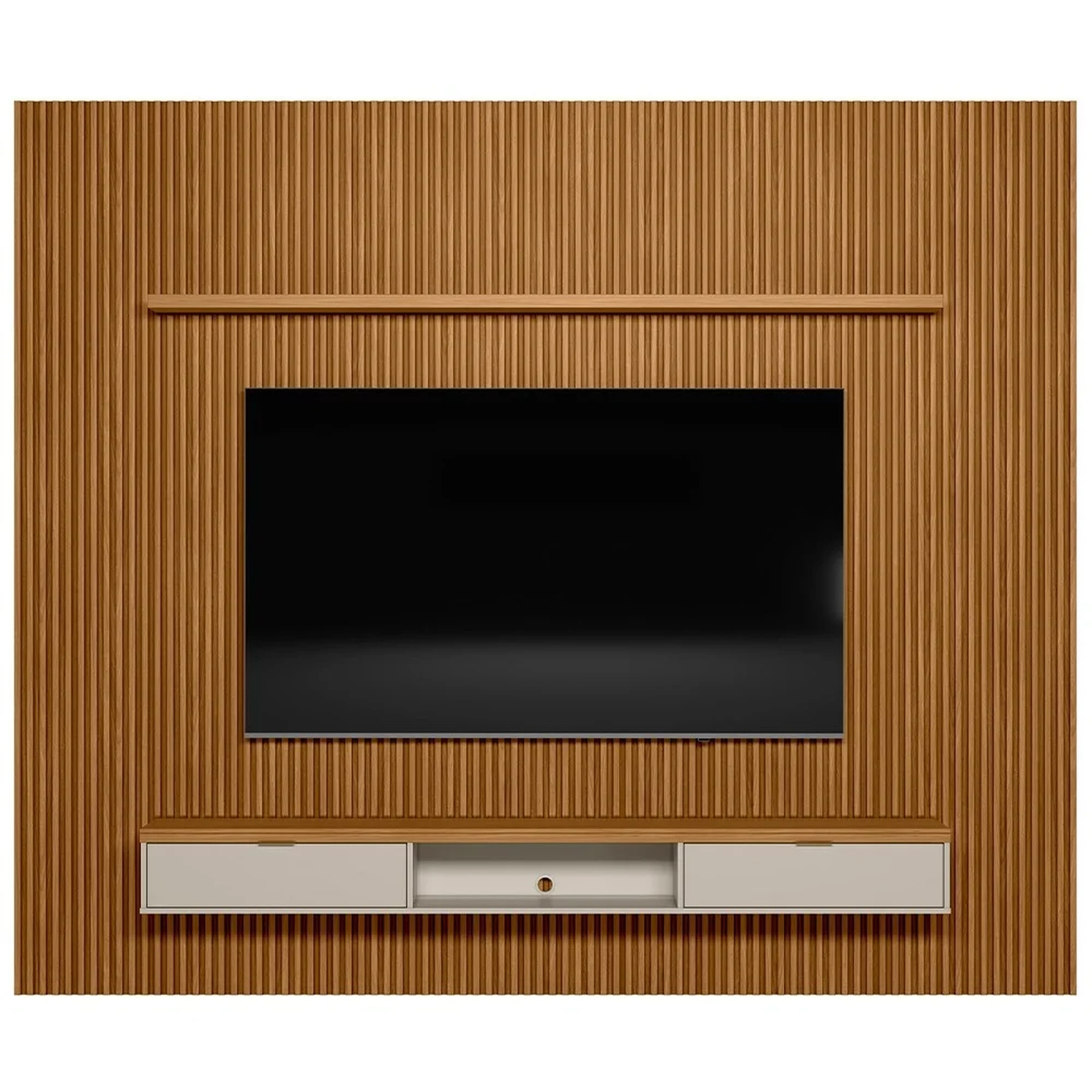 Nada como apostar em um painel ripado para dar aquele toque de modernidade ao ambiente. Com o Painel Ripado para TV 75 Pol. com Bancada 297cm Prime Plus L06 Nature/Off White, da Mpozenato, a sua sala de estar será o centro das atenções. Vem conferir!