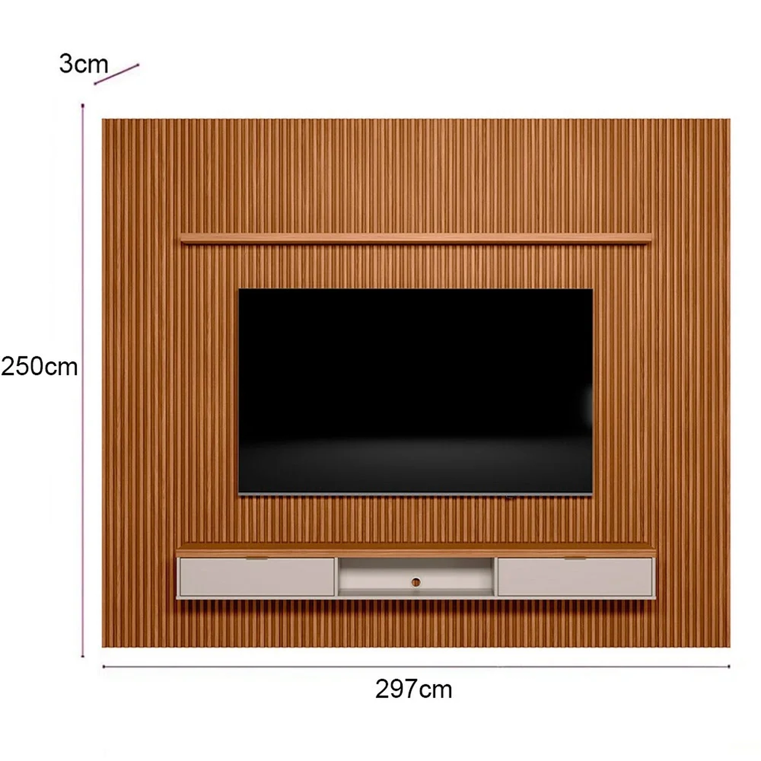 Painel Ripado: 297 x 250 x 3 cm.