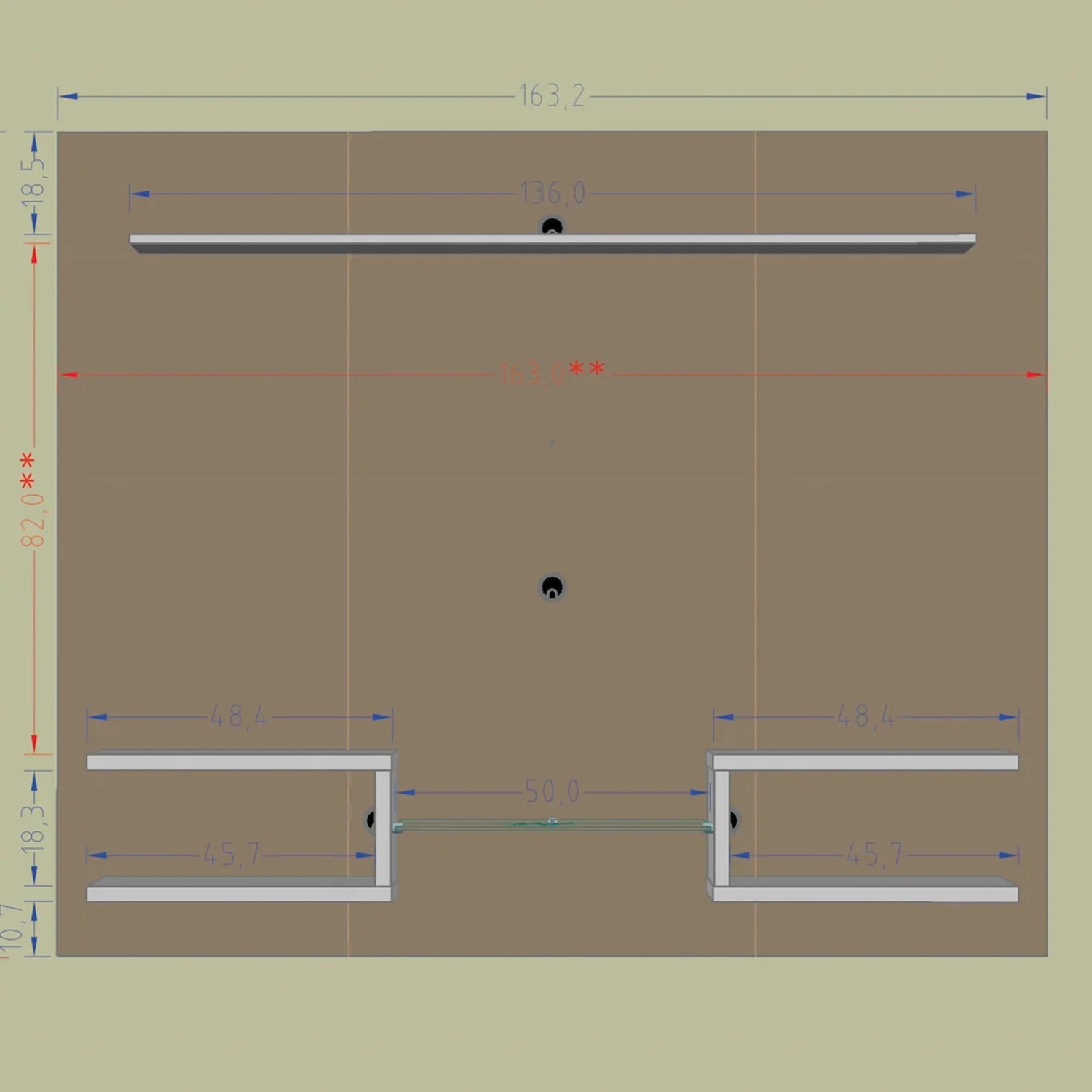 Espaço para TV: (Largura x Altura) 82 x 163 cm.