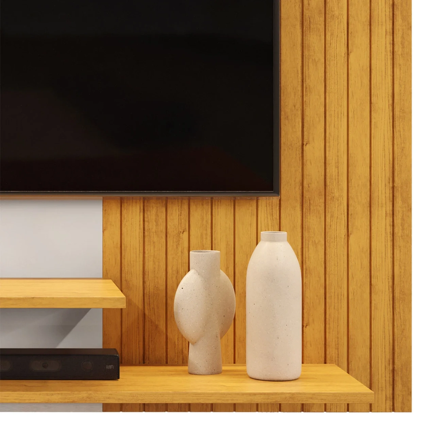 Com um design elegante e sofisticado, ele é ideal para espaços compactos, podendo ser utilizado na Sala de Estar, dormitórios ou áreas de lazer, graças à sua versatilidade. Desenvolvido para TVs de até 50 polegadas, ele garante momentos de entretenimento em família com segurança e estilo. Um dos destaques do Painel de TV é o Painel Frisado na lateral, que acrescenta um toque elegante e moderno ao móvel. Além disso, suas prateleiras inferiores proporcionam praticidade para organizar eletrônicos e acessórios, deixando tudo ao alcance. O sistema de passa-fios integrado ajuda a manter os cabos organizados, garantindo um ambiente mais limpo e harmonioso. Produzido com chapas de MDF e MDP e acabamento em pintura UV, o Painel Para TV alia durabilidade, resistência e sustentabilidade. Perfeito para transformar sua casa em um espaço mais aconchegante e estiloso.